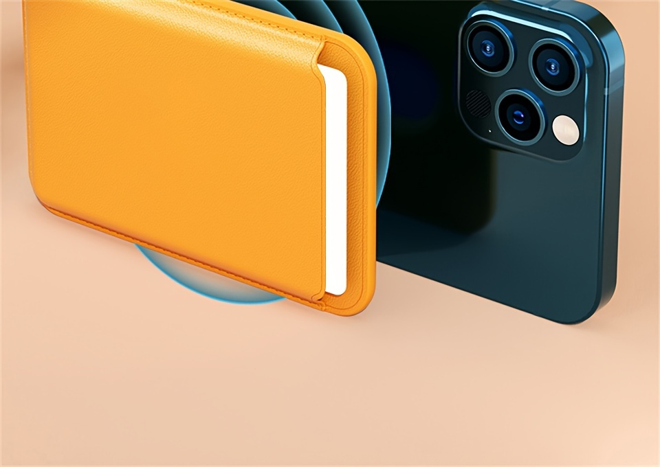 1 dona Premium sun'iy charm magnit hamyon qopqog'i iPhone modellari uchun, karta ushlagich joyi va yopishqoq karta ushlagich qobig'i bilan, batareya yo'q.