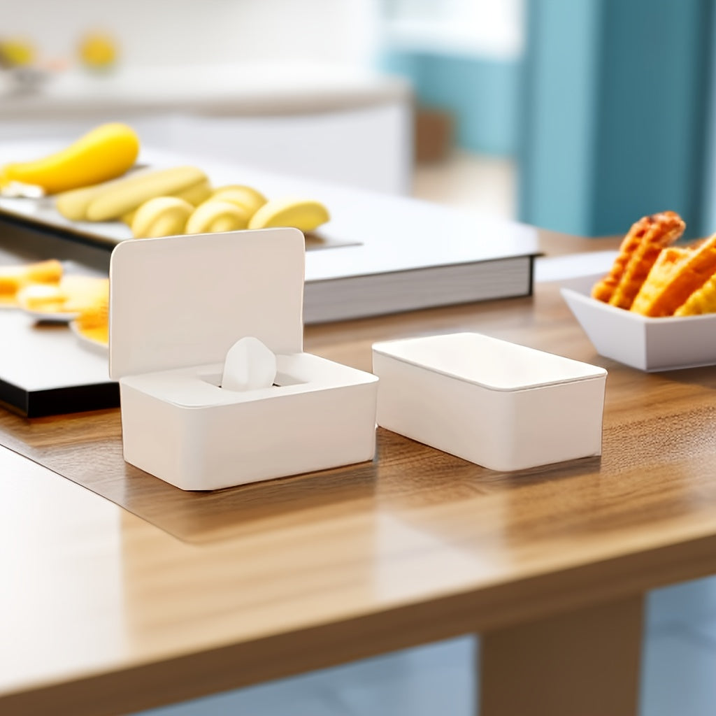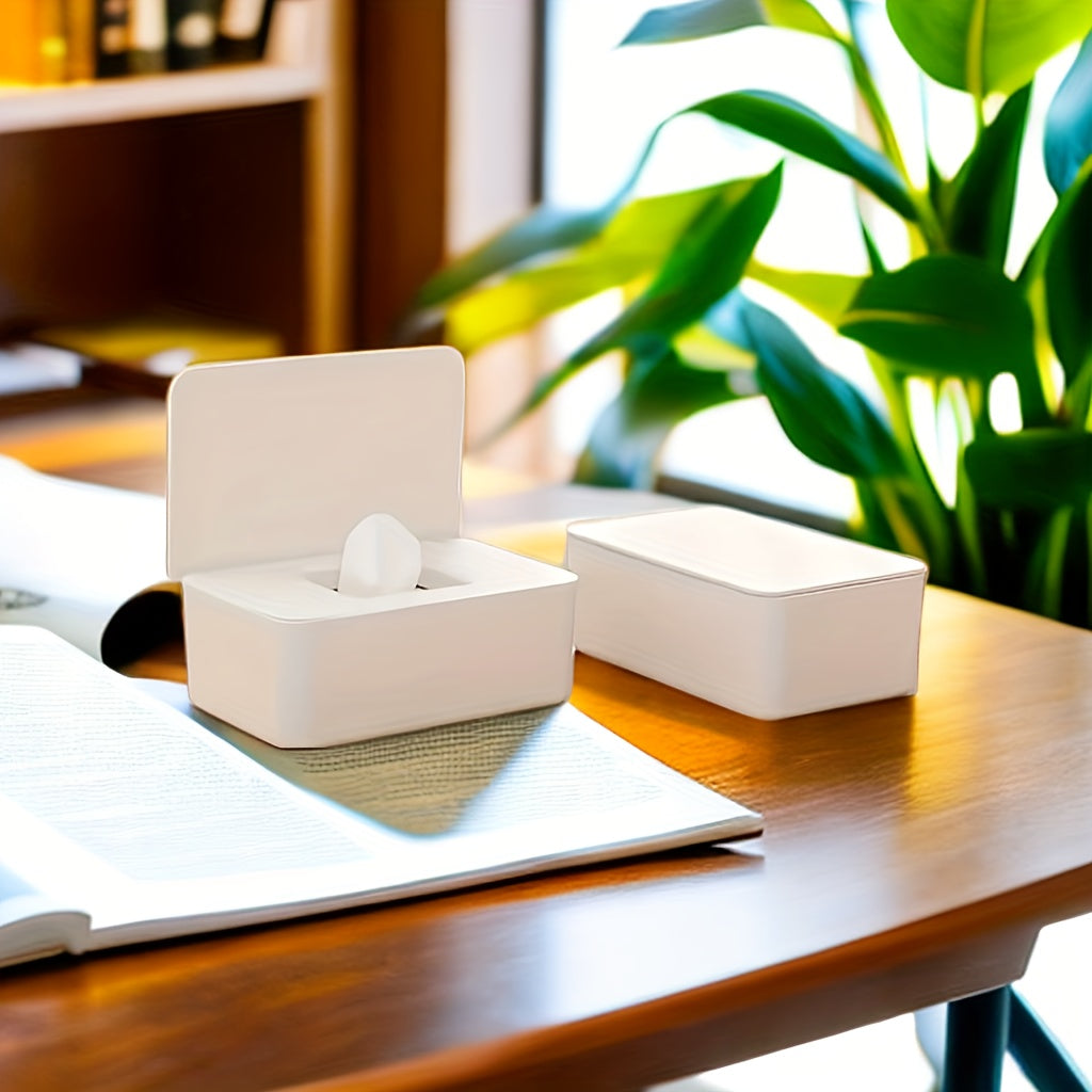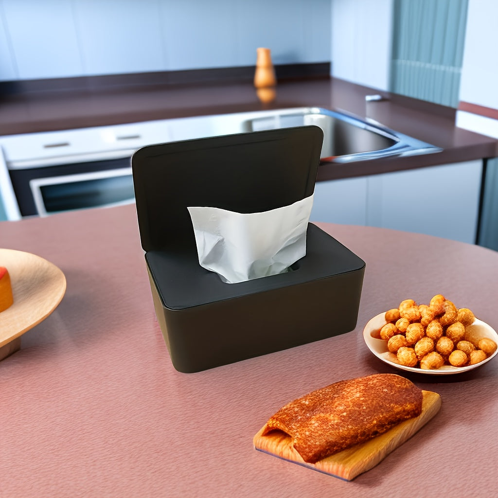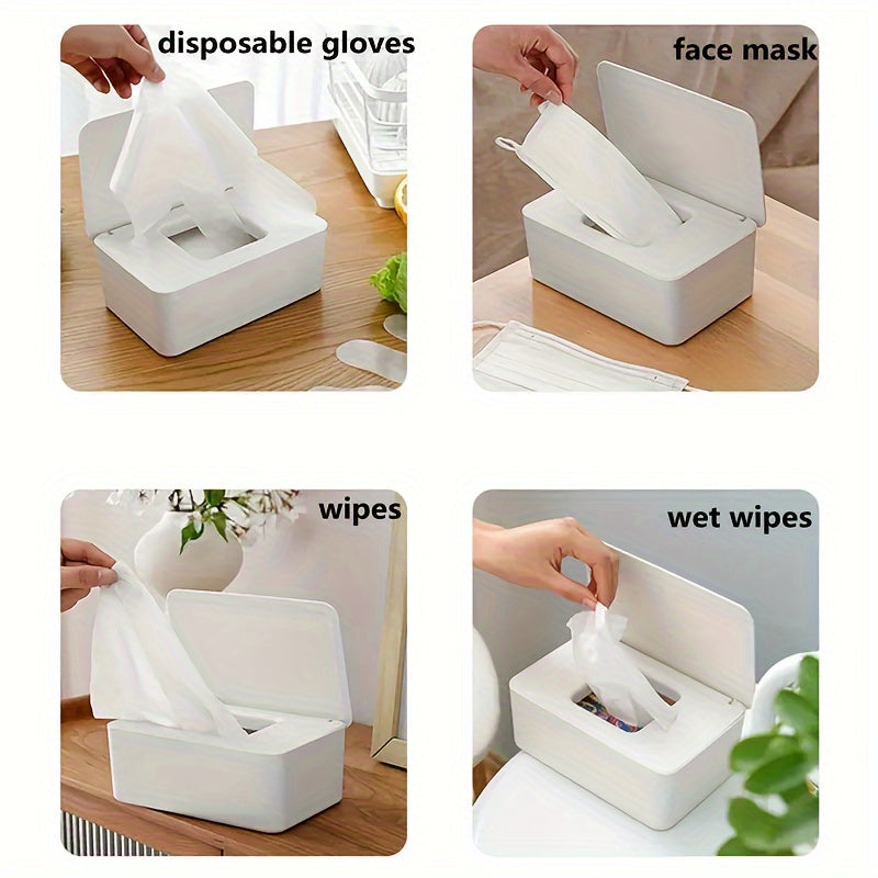 1 dona nam salfetkalar uchun dispenser, nam salfetkalarni yangi va changdan himoyalangan holda saqlash uchun muhrlangan qopqoq bilan. Stol, ofis, yotoqxona, oshxona, hojatxona va ayniqsa foydalanish uchun mos.