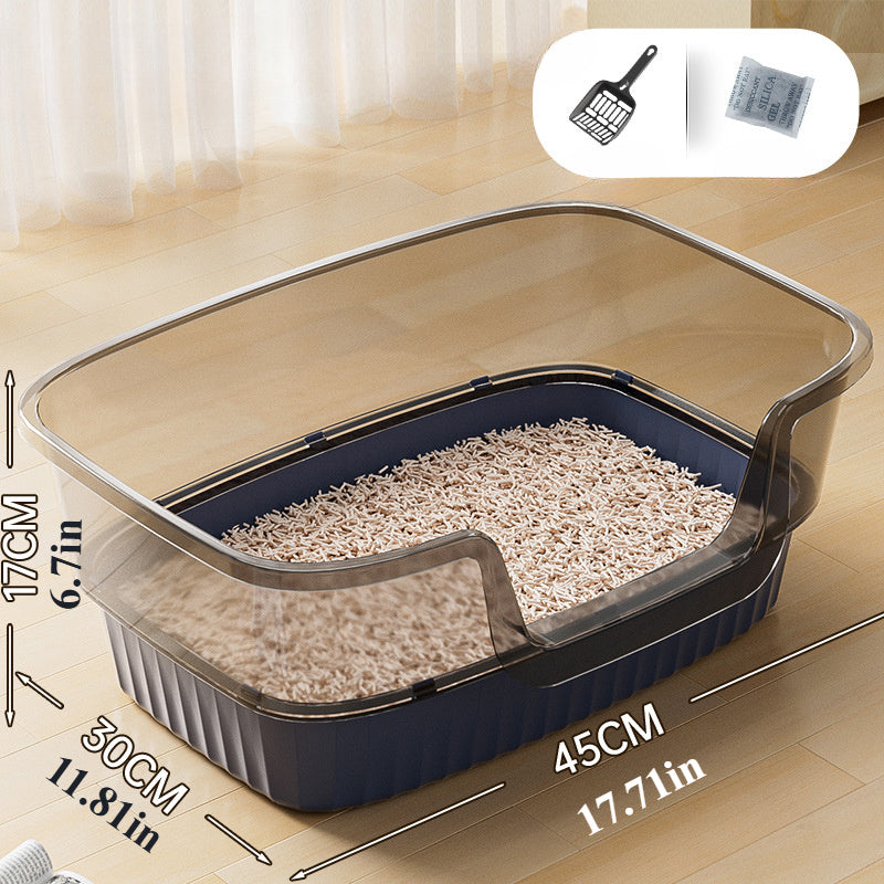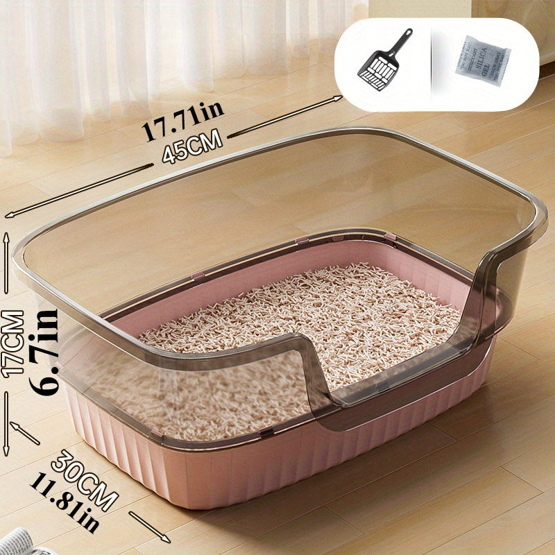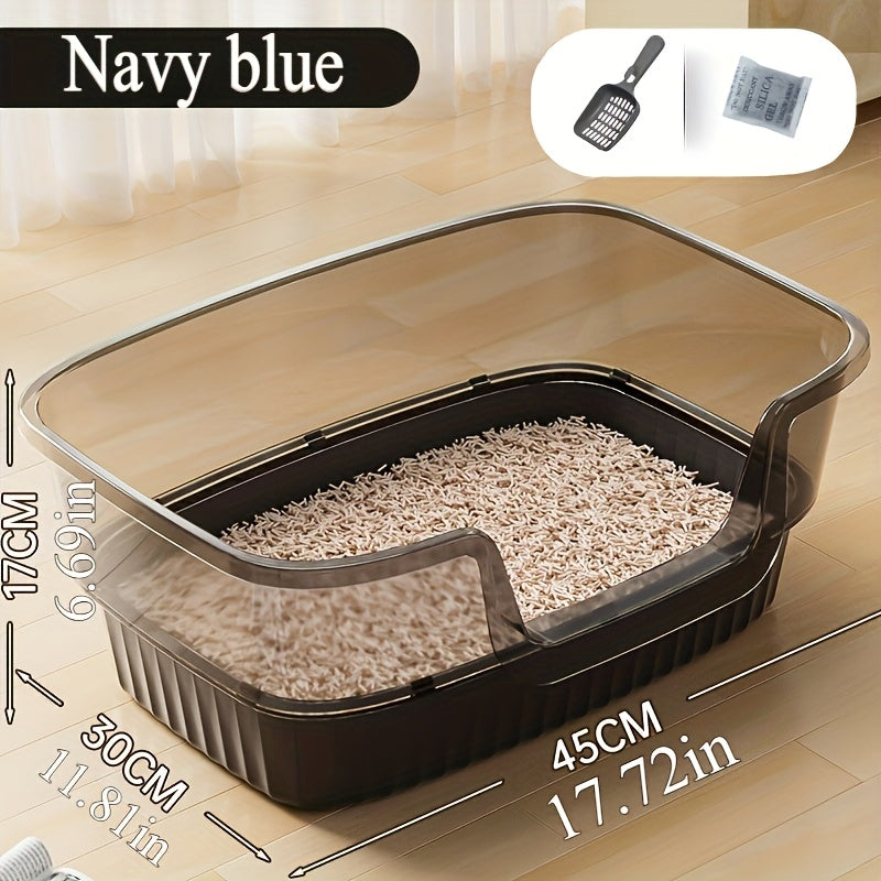 1 dona WhiskerWonders qo'shimcha katta to'rtburchak mushuk axlat qutisi shaffof qopqoq bilan, mustahkam ABS plastmassadan, olib tashlanadigan dizayn, axlat qoshig'i va deodorantni o'z ichiga oladi - barcha mushuk o'lchamlari uchun ideal, har kuni.