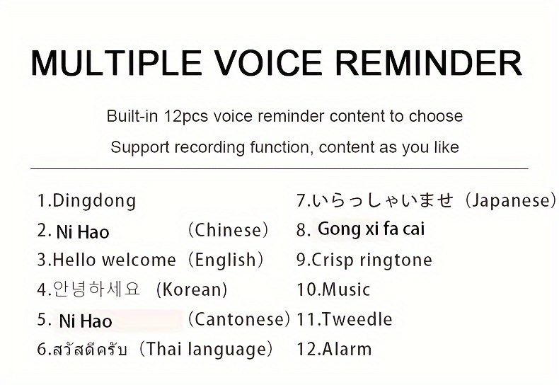 1 dona simsiz aqlli xavfsizlik infraqizil sensorli eshik qo'ng'irog'i, ovozli ogohlantirish tizimi, DIY yozib olinadigan oilaviy kutib olish signalizatsiyasi, AAA batareyasi bilan oson o'rnatish.