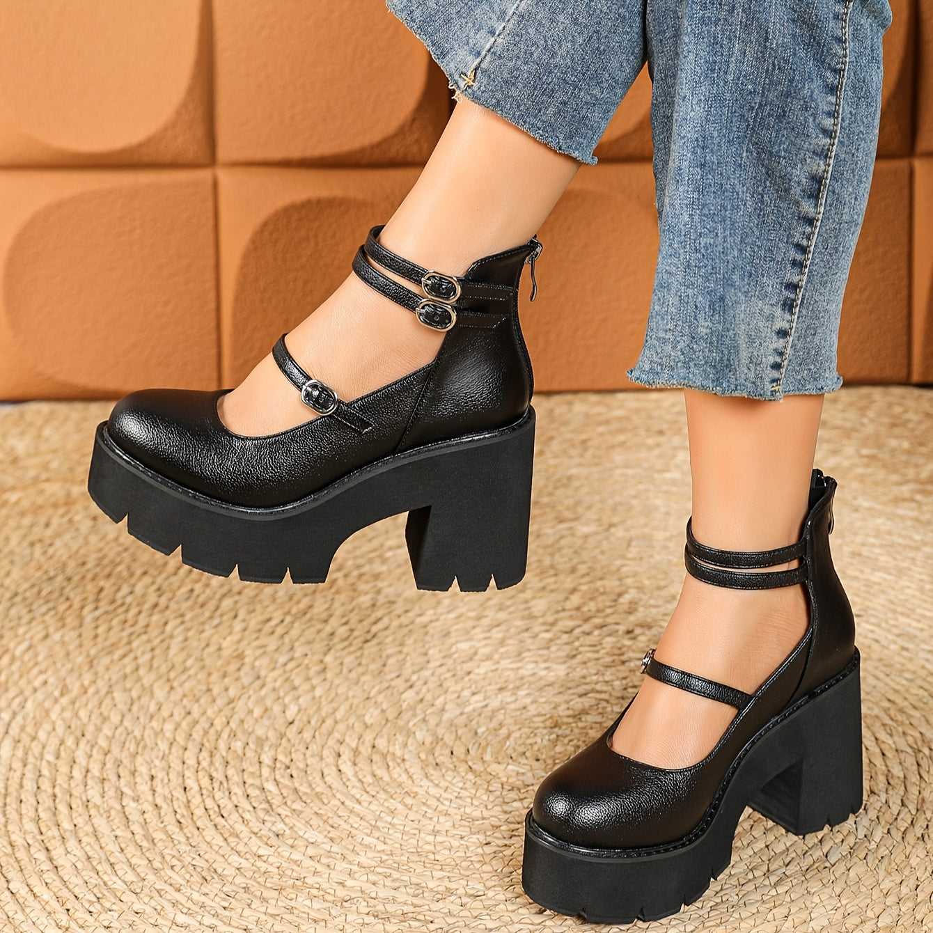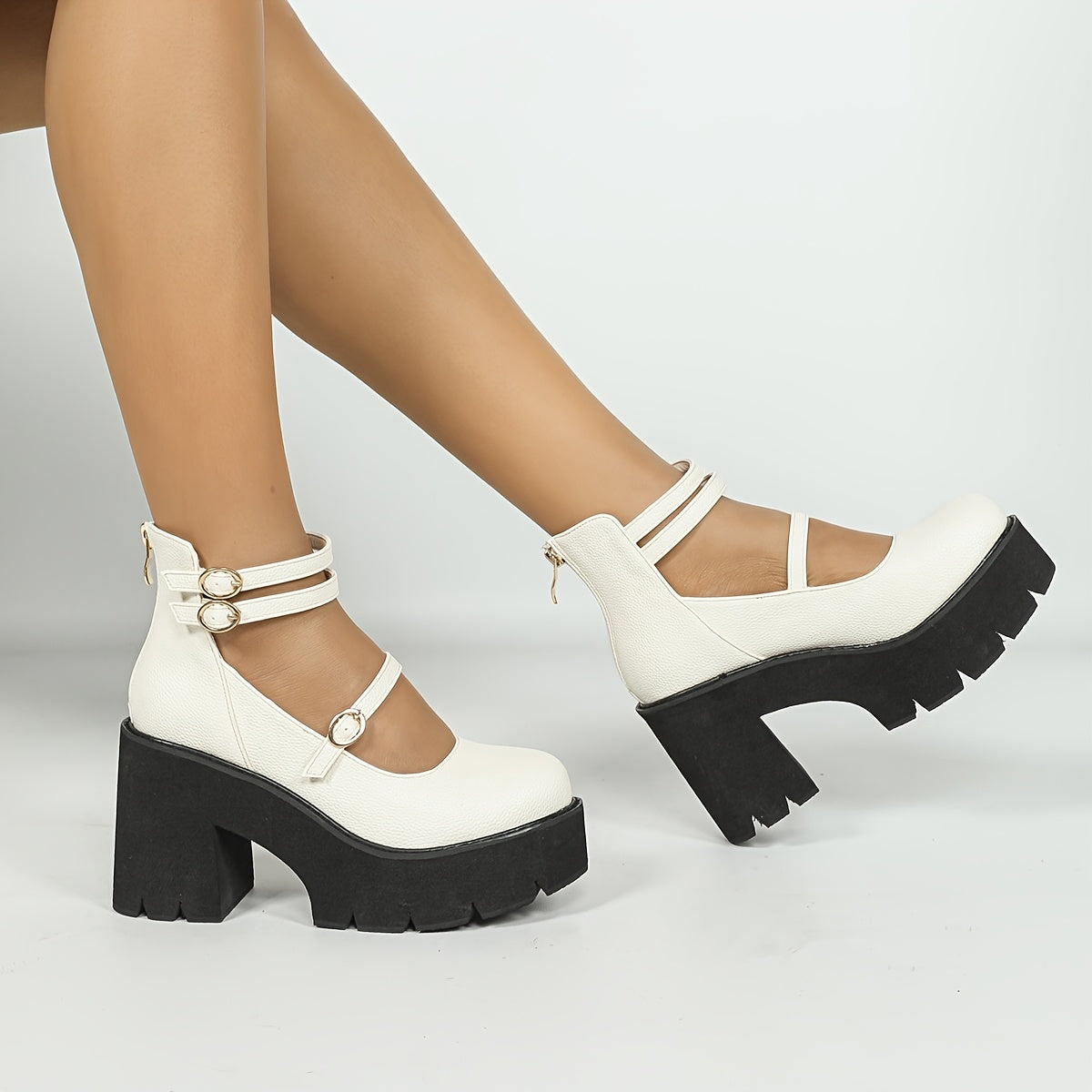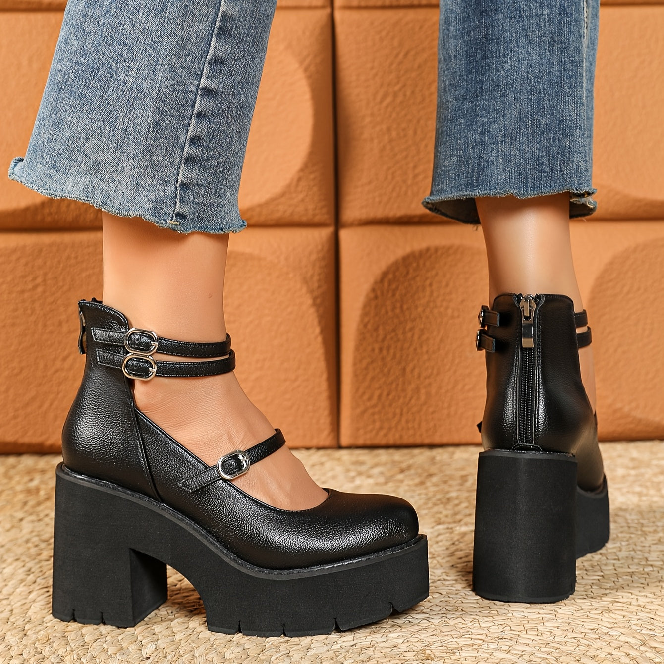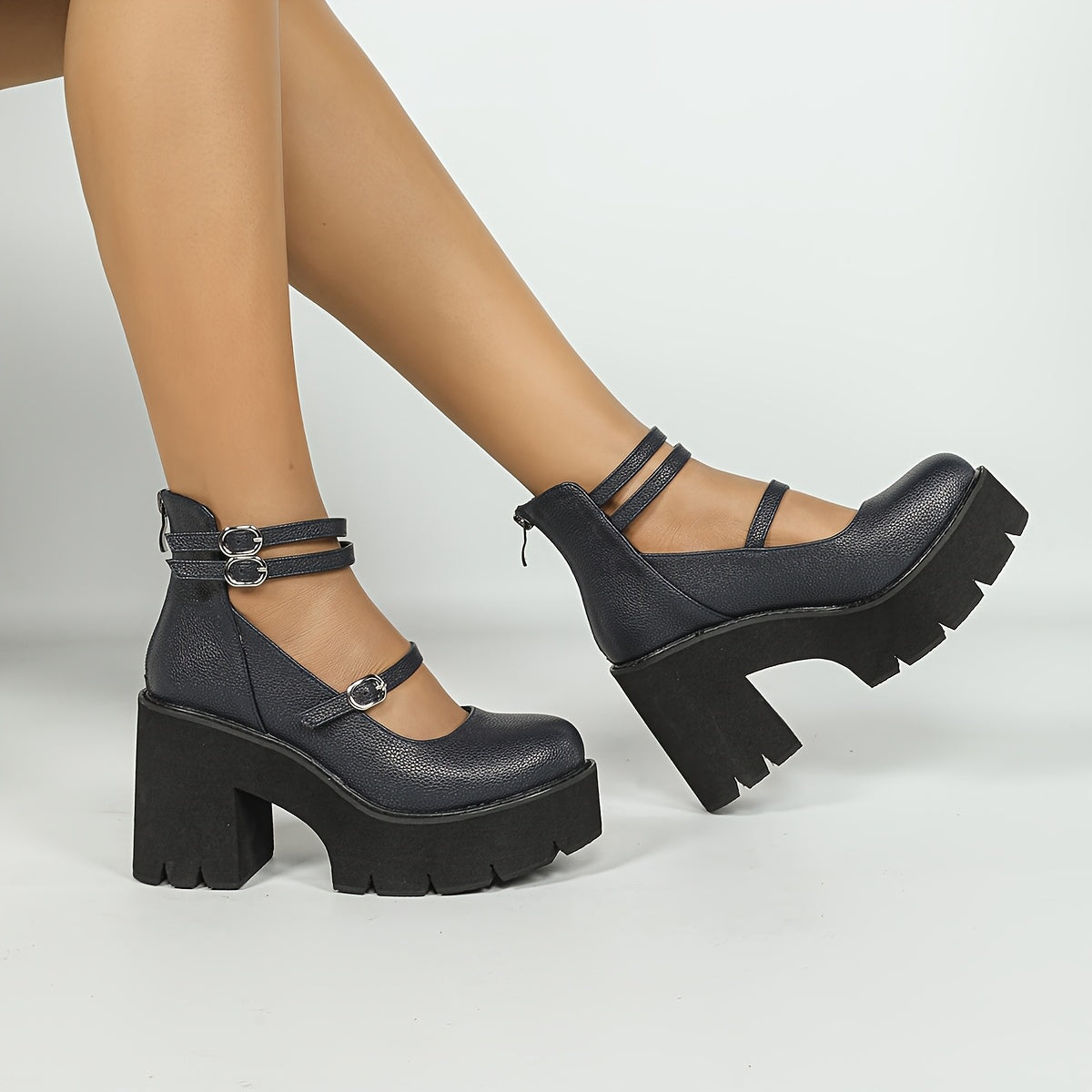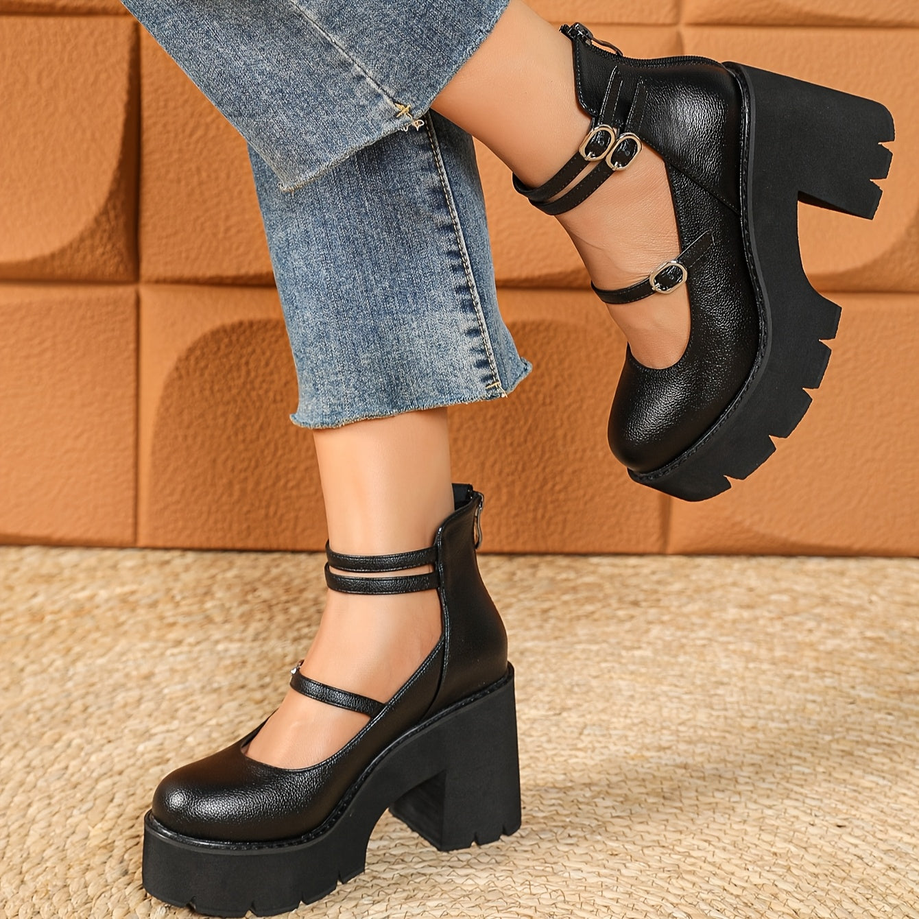 1pr Ayollar uchun O'rta Bo'yli Moda Botinkalari - Bir Rangli, Qulay, Sirpanmaydigan, Dumaloq Boshli, Kichik Kaltak, Sun'iy Charm, Gumus Taglik - Kuz/Qish Yuqori To'piq Botinkalari, Zipper Yopilishi, Matoli Ichki Qism