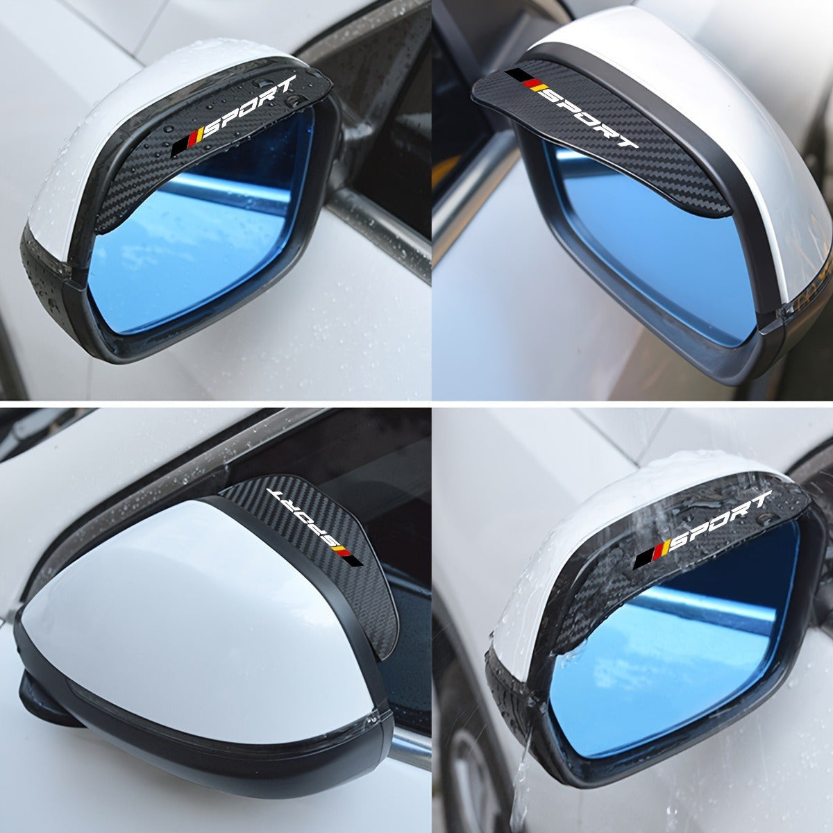 Karbon tolali avtomobil yon oyna yomg'ir himoyachilari, qora va qizil, Germaniya bayrog'i dizayni bilan, universal moslik