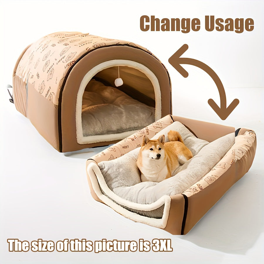 2-in-1 ajraladigan mushuk yotoq va it uyi, mo'ynali material va to'p shaklidagi ilova bilan. Qo'l tutqichi mavjud va barcha shakldagi hayvonlar uchun turli o'lchamlarda mavjud.