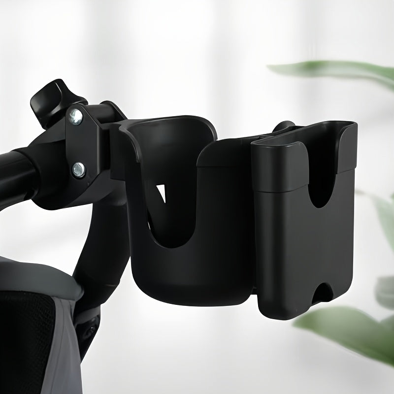2-in-1 Bolalar aravachasi uchun stakan tutgichi, telefon o'rnatgichi, shisha uchun rack, bardoshli ABS, qora, ota-onalar uchun