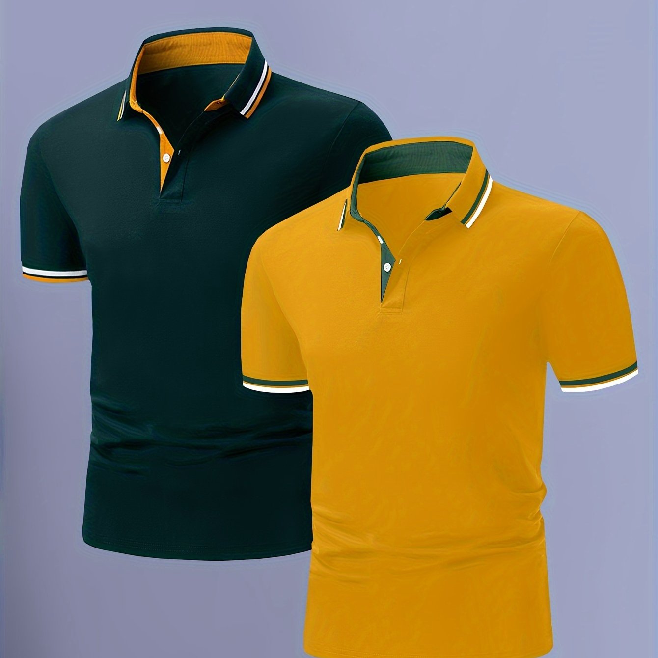 2 ta erkaklar uchun qisqa yengli ko'ylaklar, qarama-qarshi yenglar bilan - yengil polyester, pastel ko'k va pushti, oddiy moslama, yozda yoki sovg'a sifatida berish uchun ideal