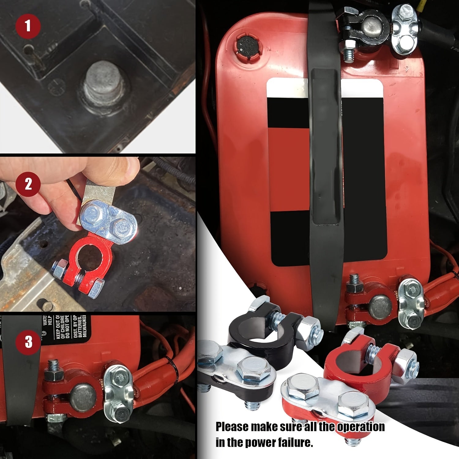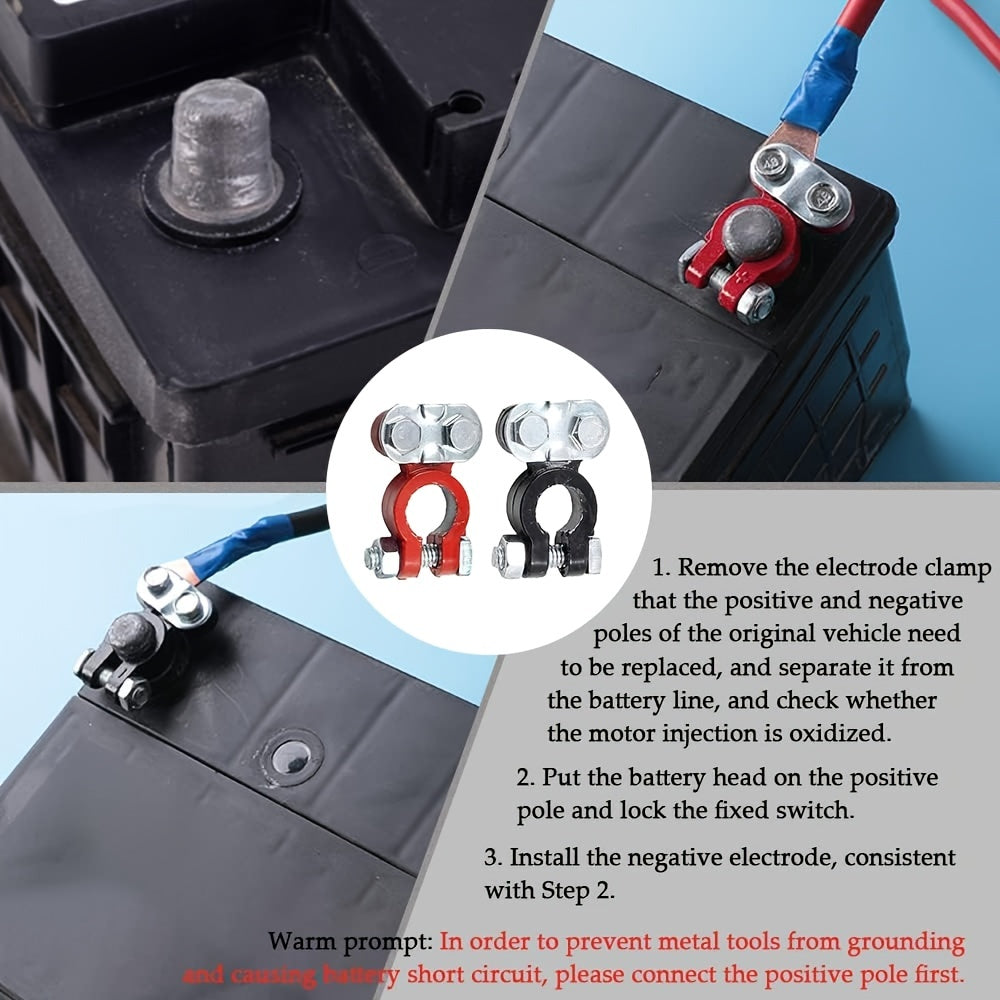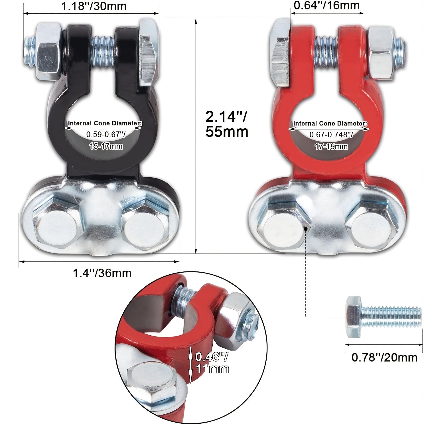 2 ta to'plam avtomobil akkumulyator terminali ulashlari, ijobiy va salbiy avtomobil terminali
