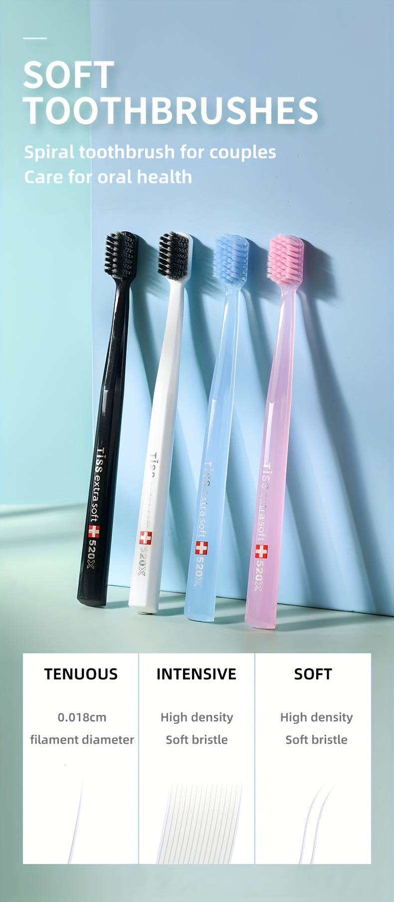 2 ta paket yumshoq tish cho'tkasi, kattalar uchun, yumshoq cho'tka sochlari, chuqur tozalash og'iz parvarishi