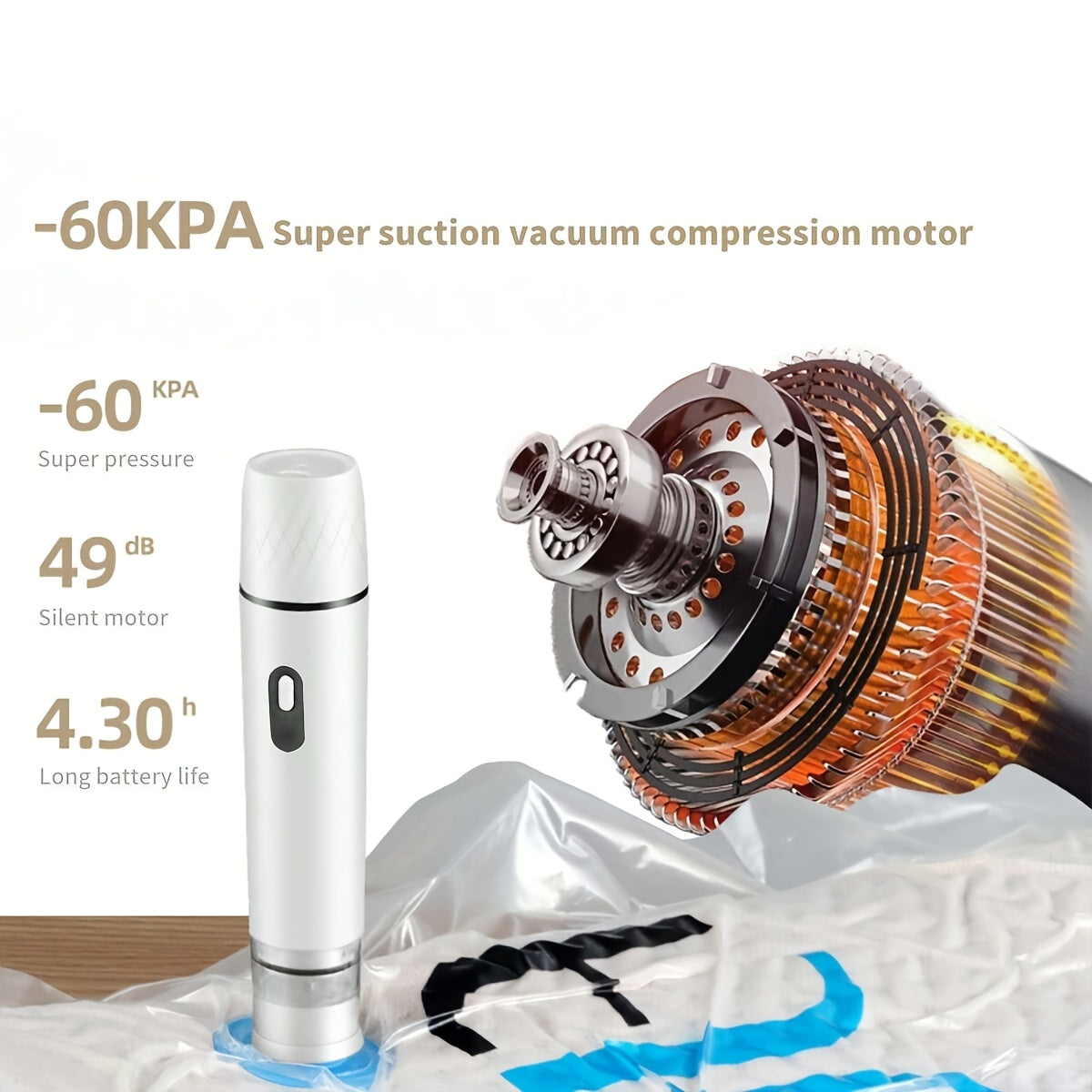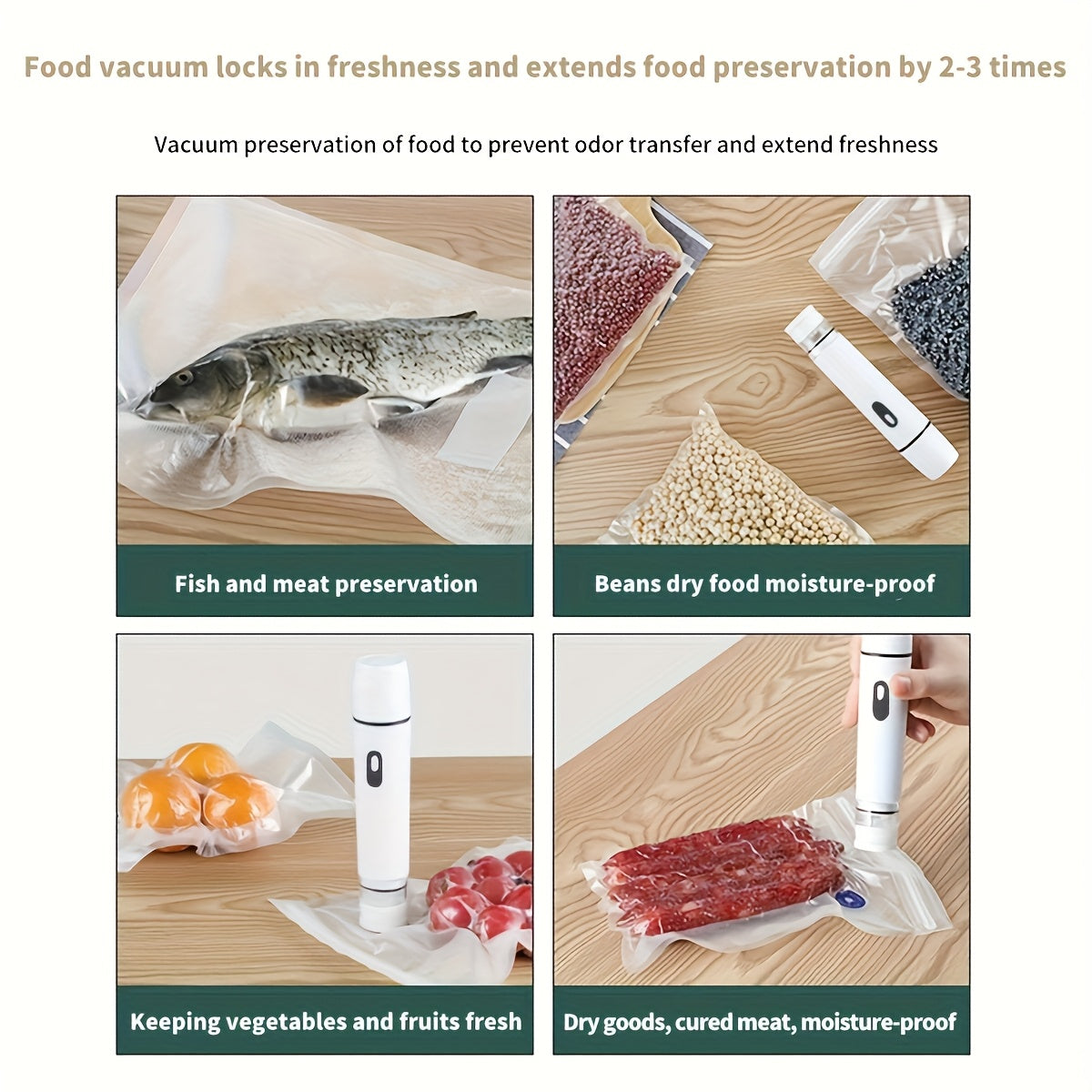 Qayta to'ldiriladigan qo'l ushlash uchun vakuum yopishtiruvchilari, kuchli tortish va past shovqin bilan oziq-ovqat saqlash uchun