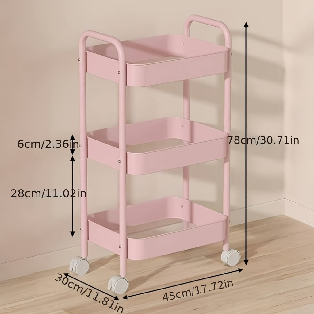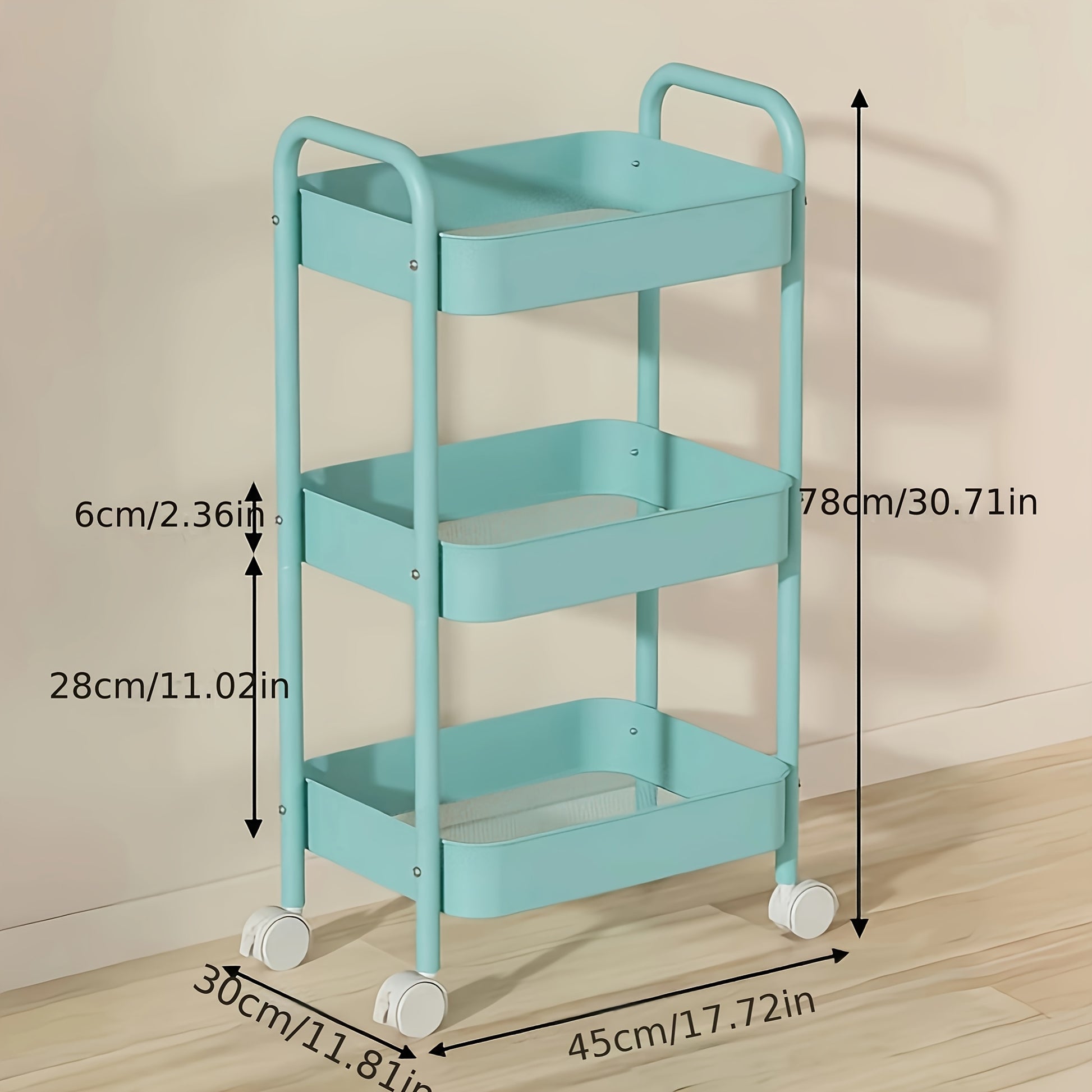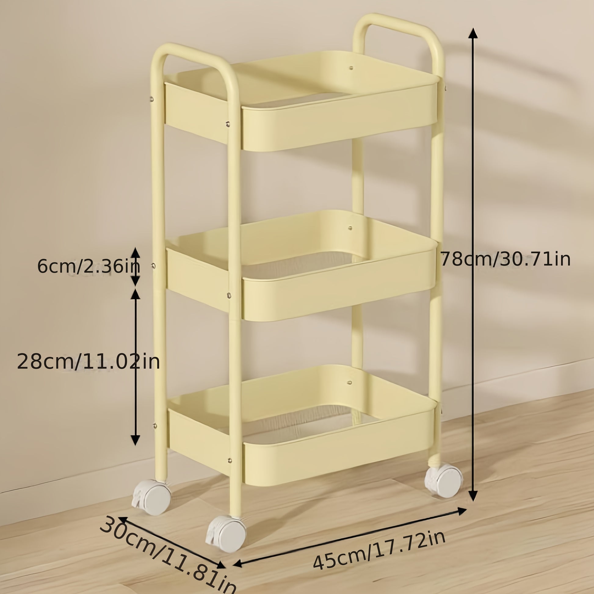 Qizil, oq, ko'k va sariq ranglarda 2-qavatli metall rulonli saqlash aravachasi oshxona, hammom va yotoqxonalar uchun