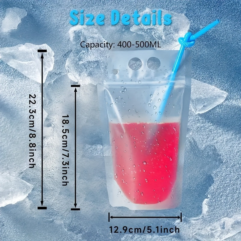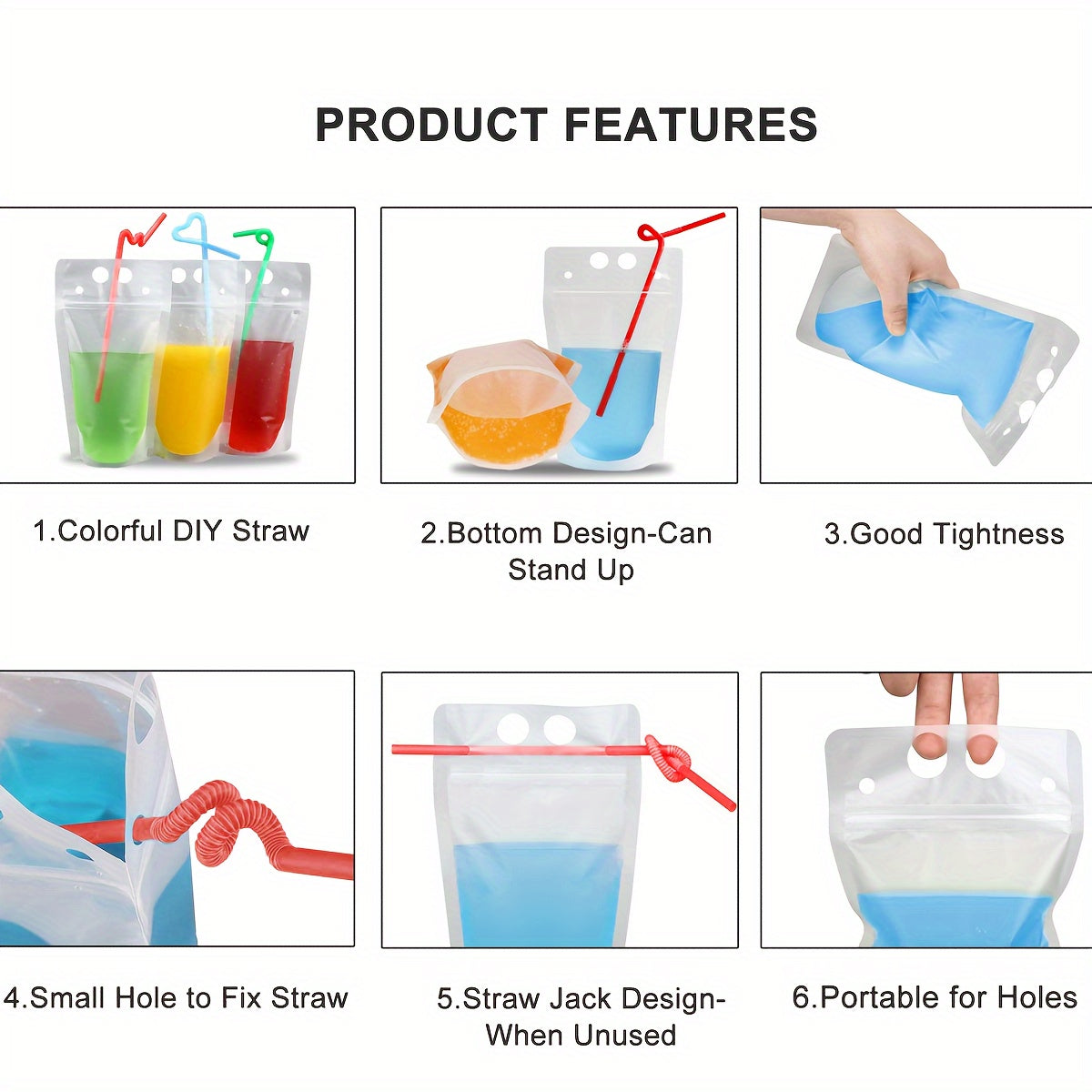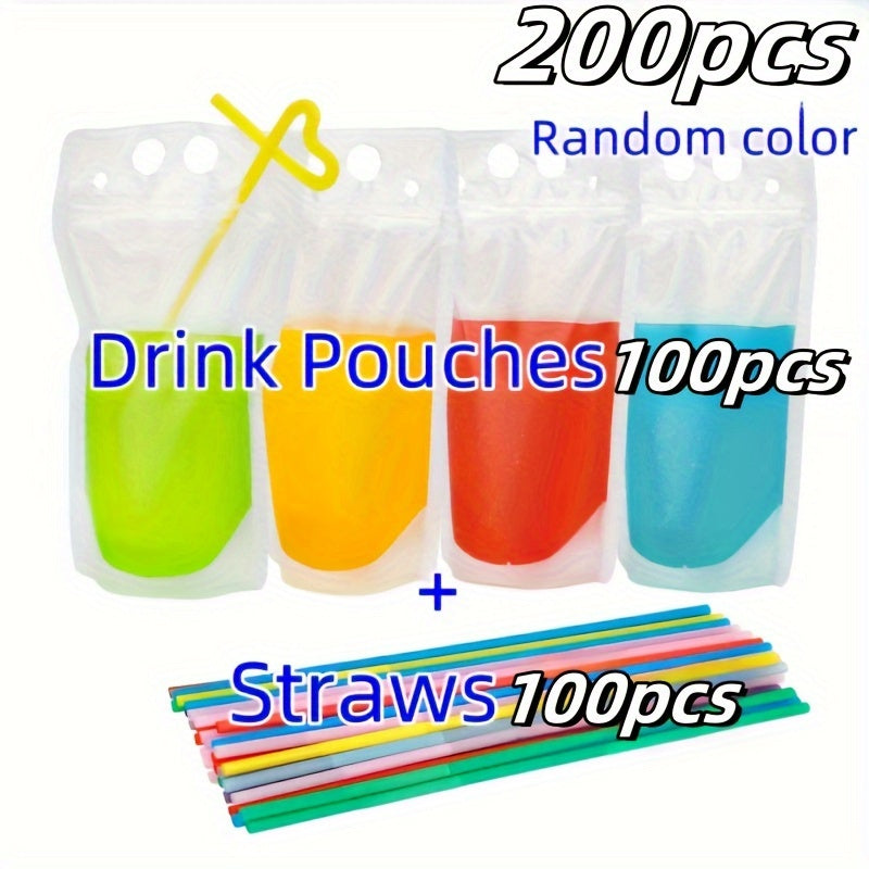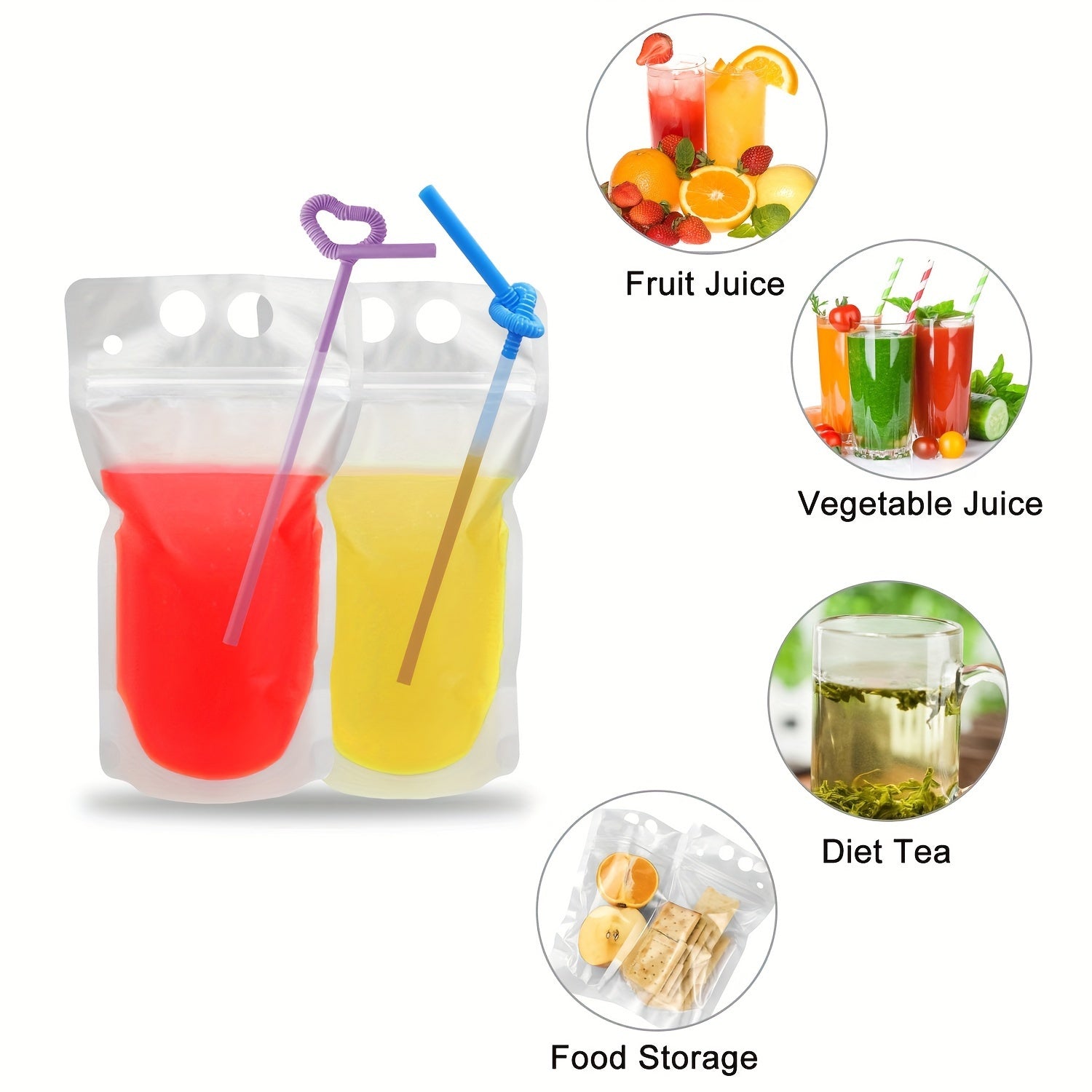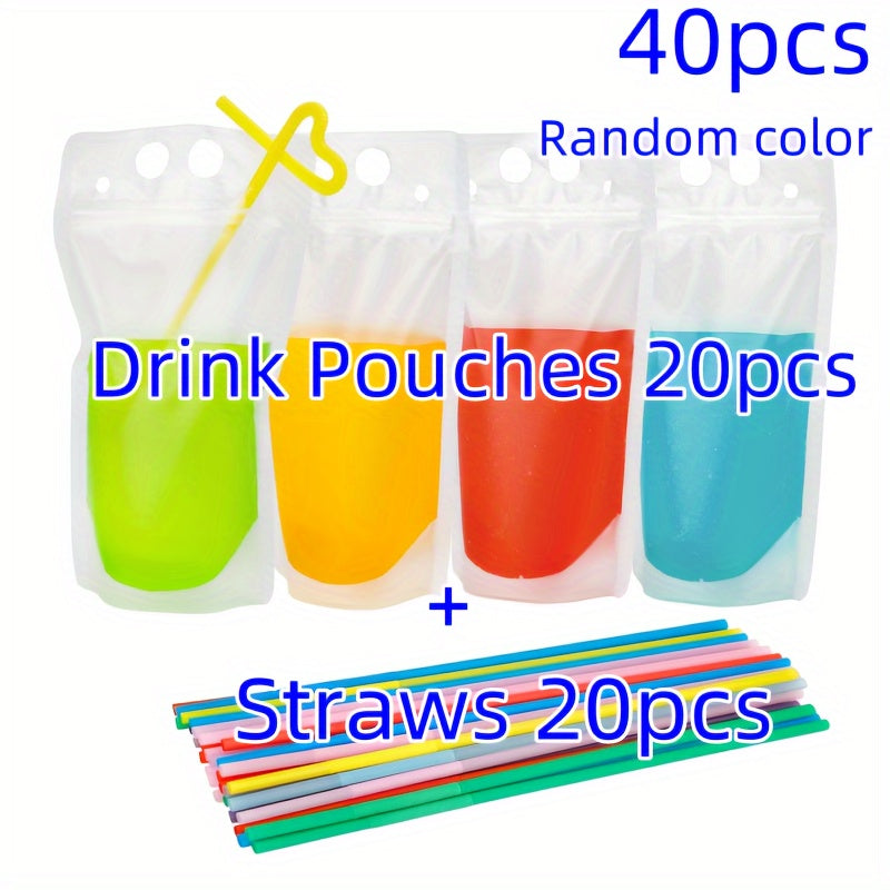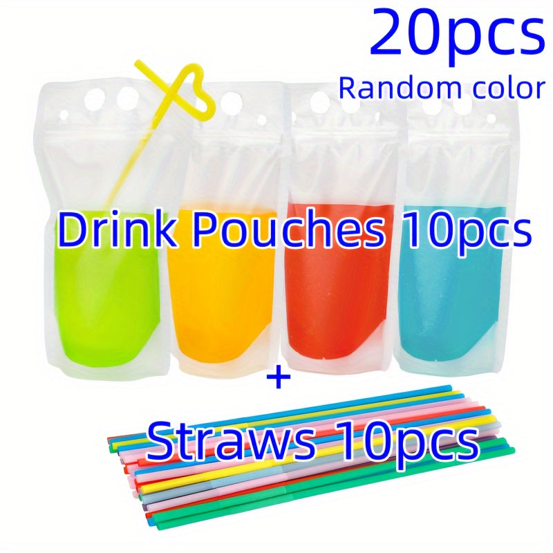 20 ta plastik ichimlik paketlari, quvur teshiklari bilan, qayta yopiladigan, portativ sharbat sumkalar