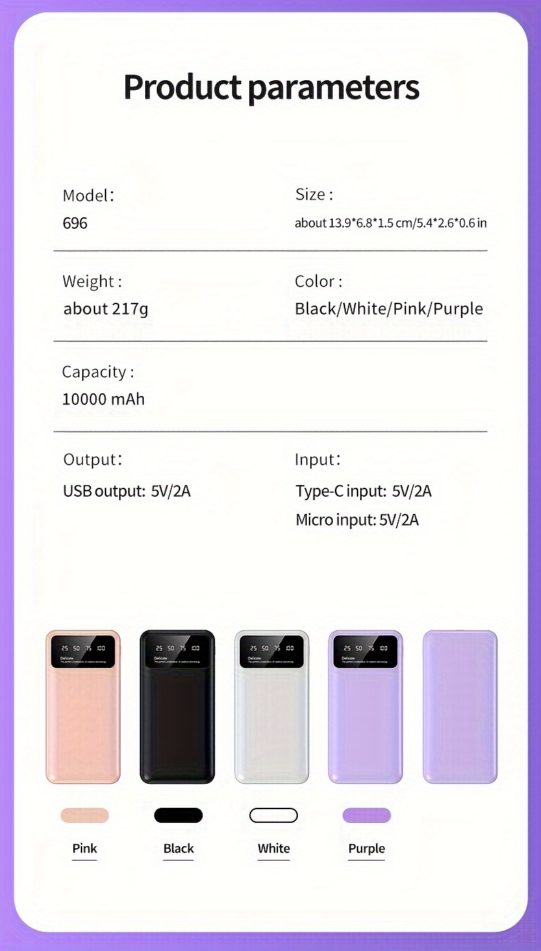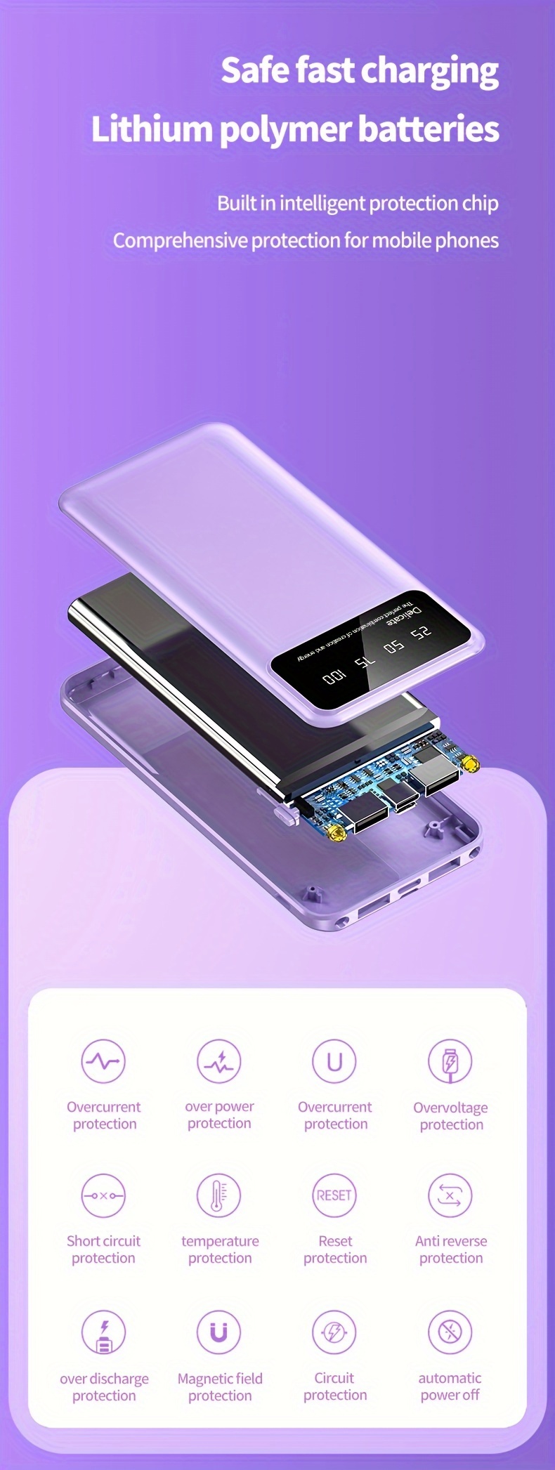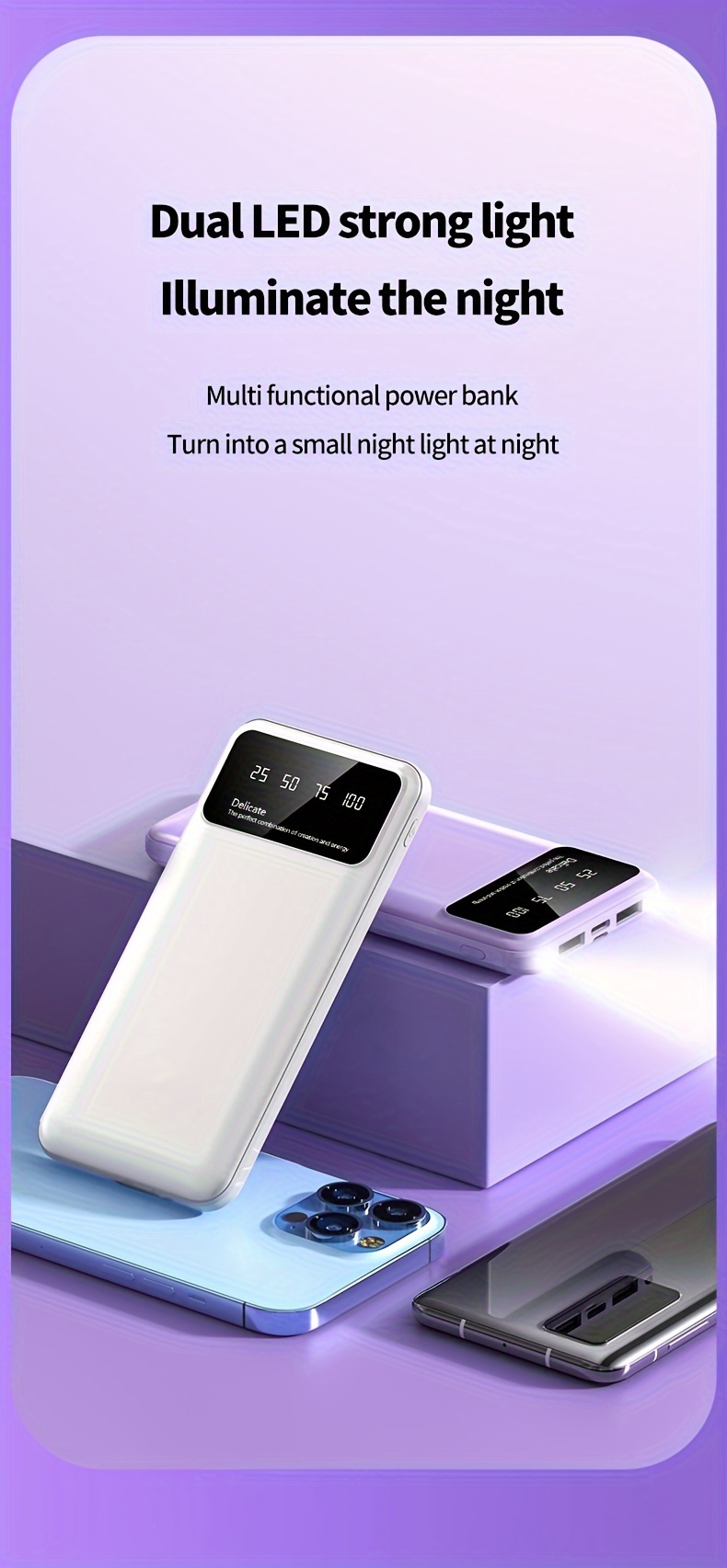 20000mAh/10000mAh portativ quvvat banki LED displey bilan, yengil va kichik. iPhone/Android qurilmalari bilan mos keladi. Favqulodda vaziyatlar uchun ideal.