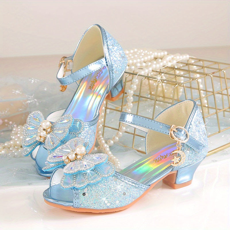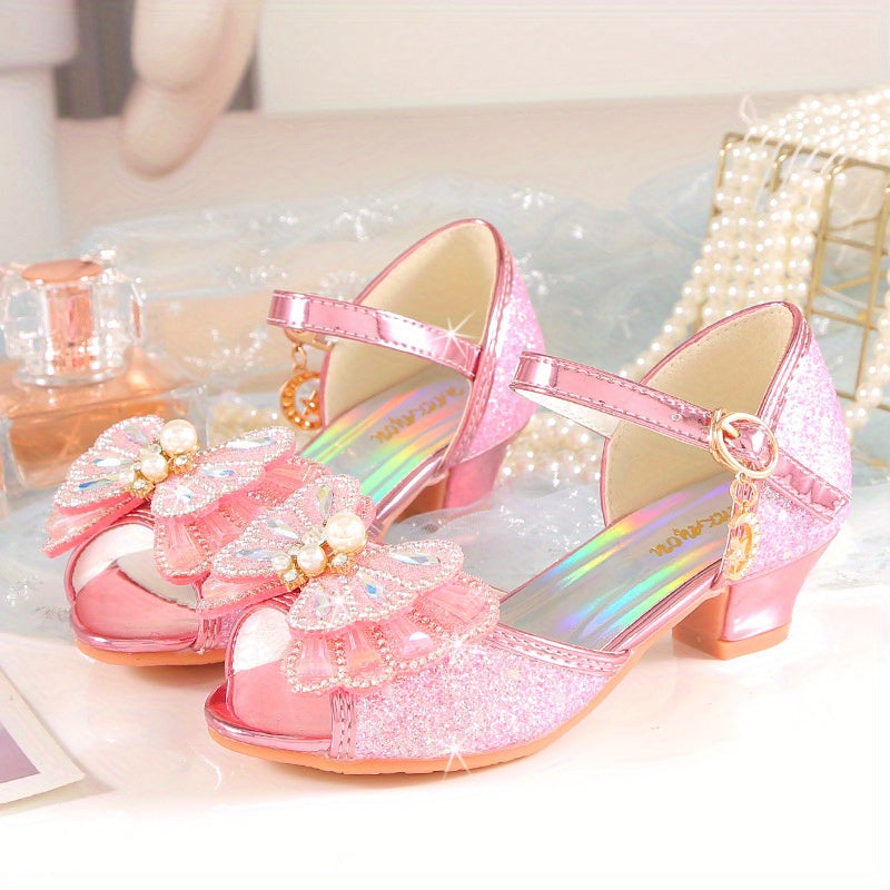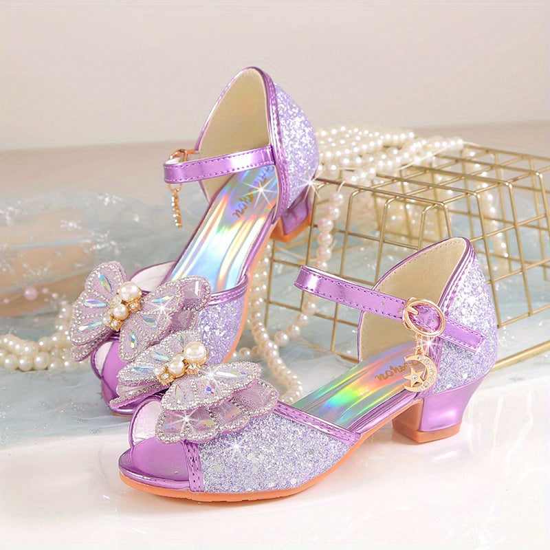Bolalar yozgi qizlar uchun malika sandalilari, kristalli yuqori qadamli kundalik poyabzal