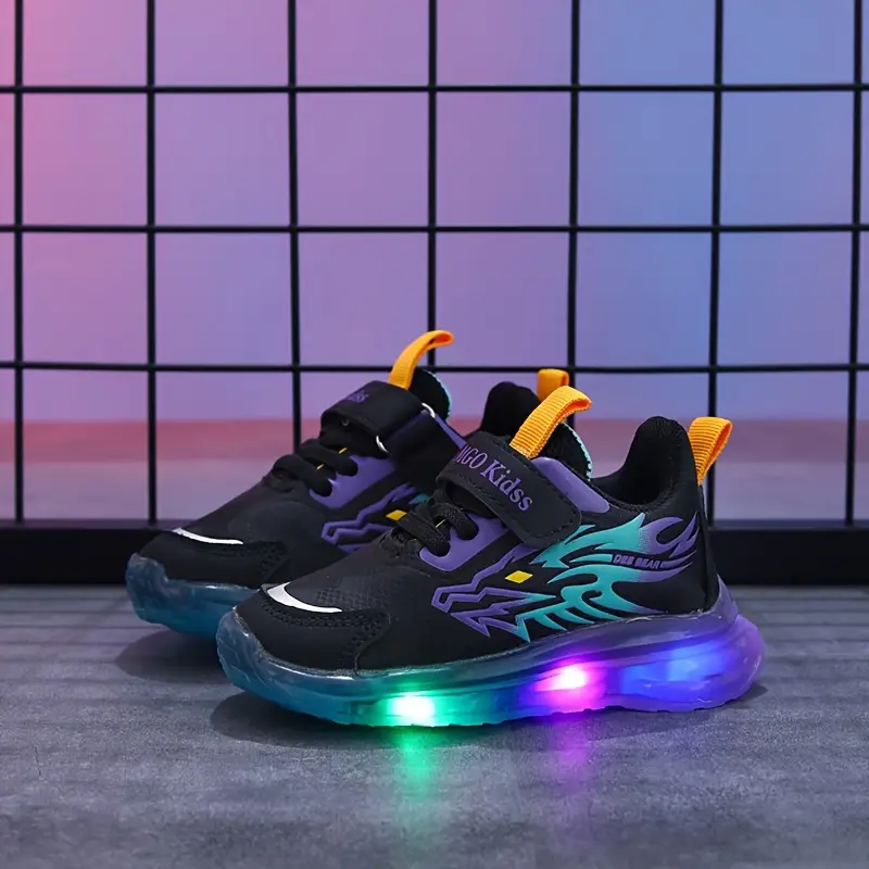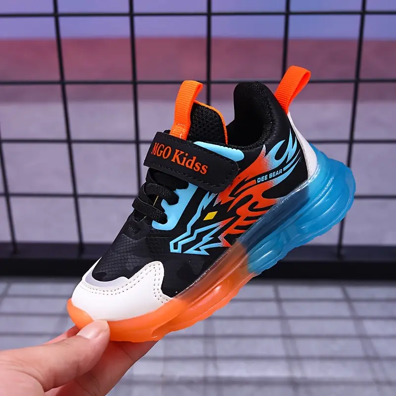 2025 Bahor Yangi Dragon Sport Poyabzallari 1-9 yoshli O'g'il bolalar uchun, LED Chiroqlar va Yorqin Yoritish bilan.