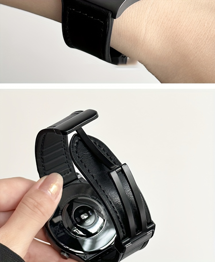 20mm 22mm sintetik charmli smart soat tasmasi, egiluvchi qopqoq va magnit teshik bilan, Galaxy Watch 4/5, Active 2, Amazfit GTR/GTS va HUAWEI GT3 GT4 bilan mos keladi; batareya kiritilmagan.