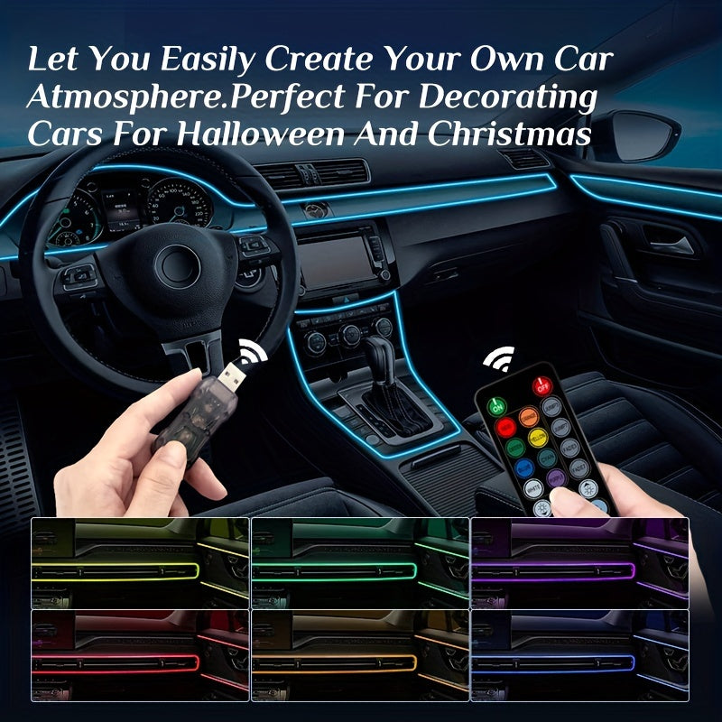 24V RGB Avtomobil ichki LED chiziq chiroqlari, masofadan boshqarish bilan musiqa tugmasi nazorati