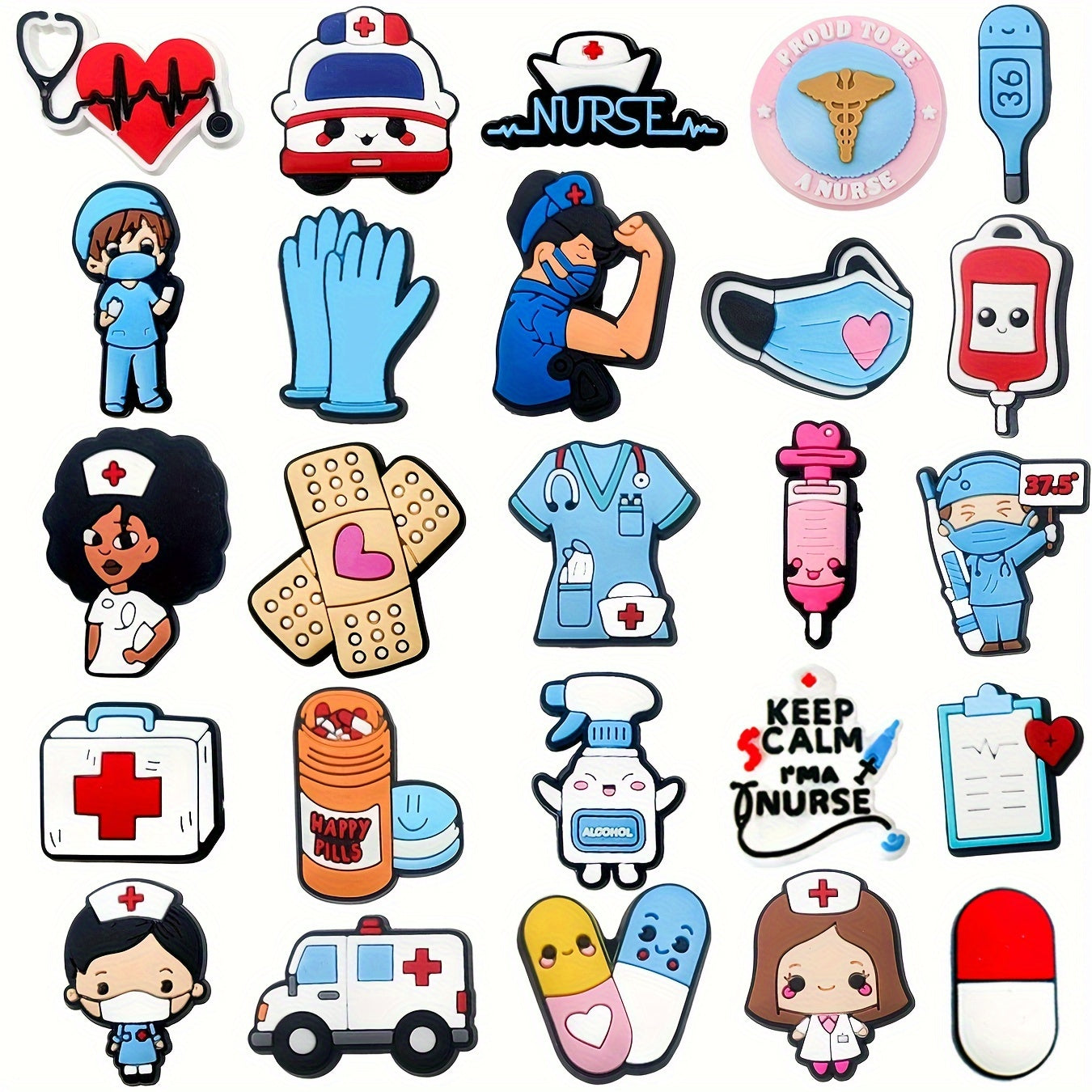 25-to'plam tibbiy poyabzal charm'lari PVC hamshira sog'liqni saqlash ikonlari poyabzal aksessuarlari