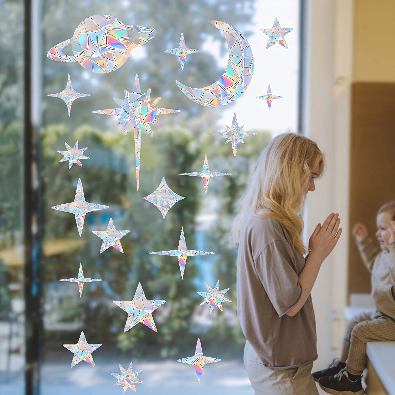 25 dona Yulduzli osmon deraza yopishtiruvlari qushlar to‘qnashuvining oldini olish uchun Rangli vinil