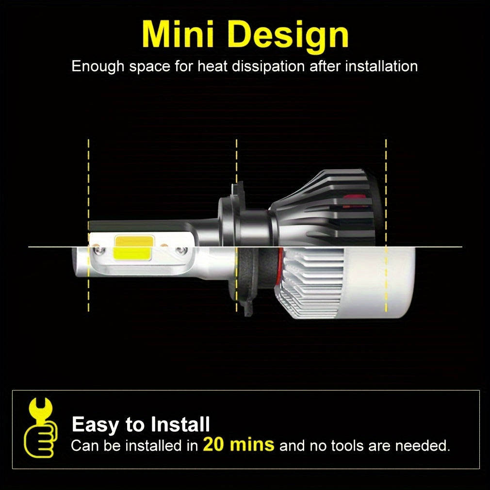 2 dona avtomobil LED faralar lampochkalari, sovuq oq, issiq oq, COB chiplar, H4 aviatsiya alyuminiy