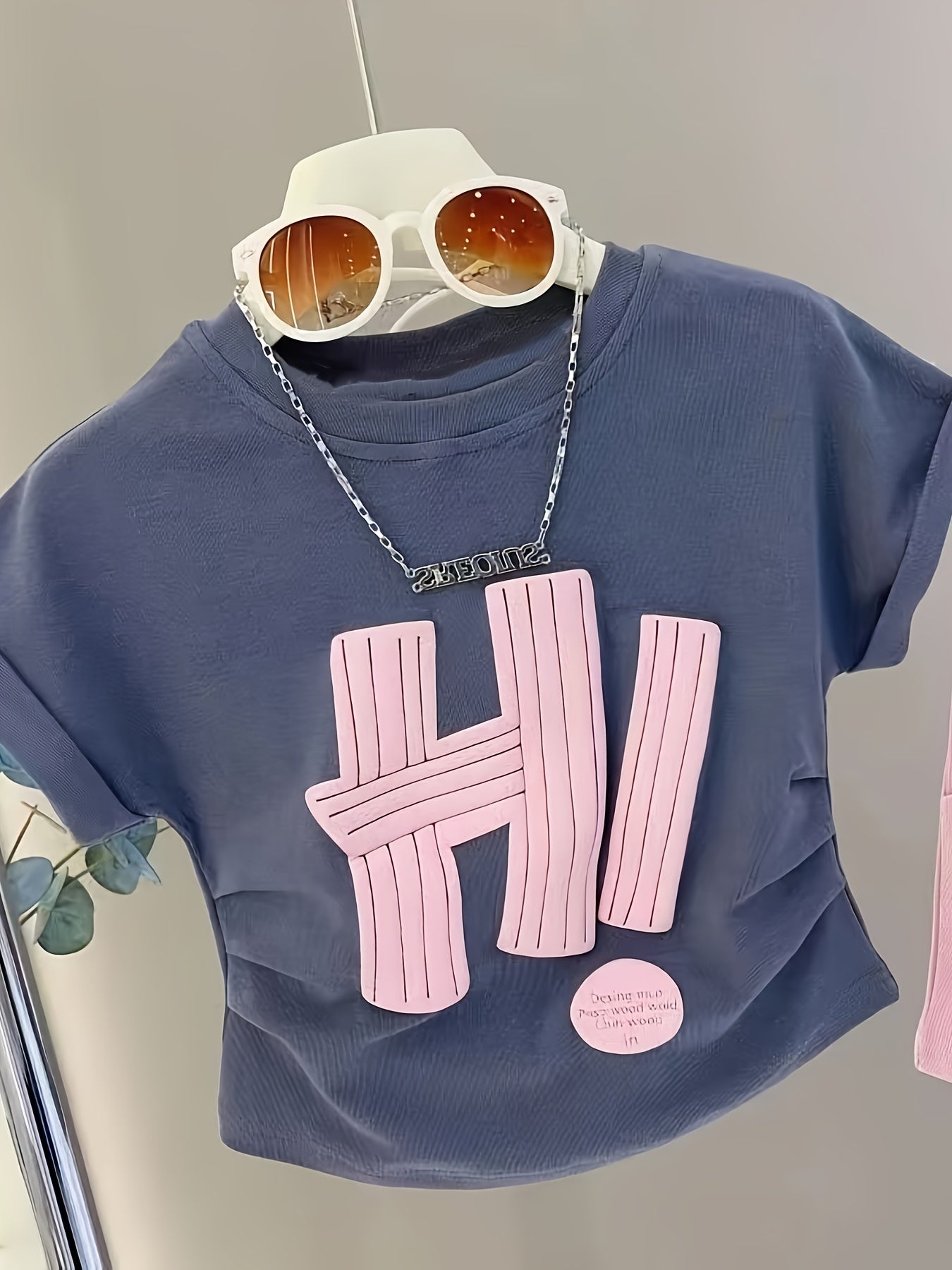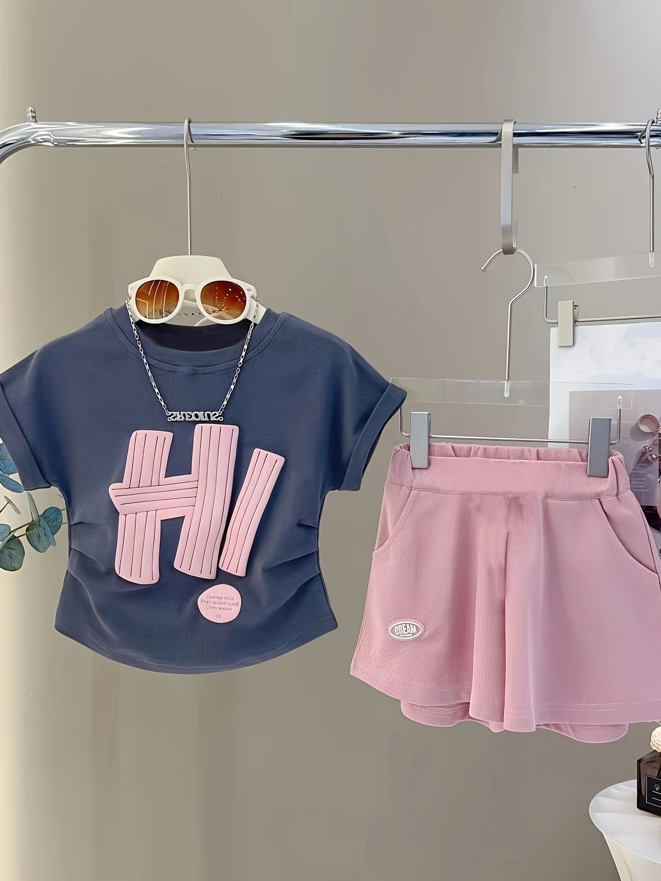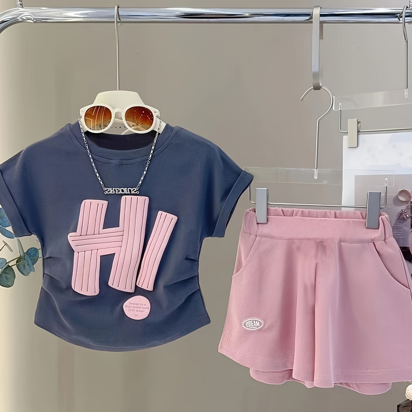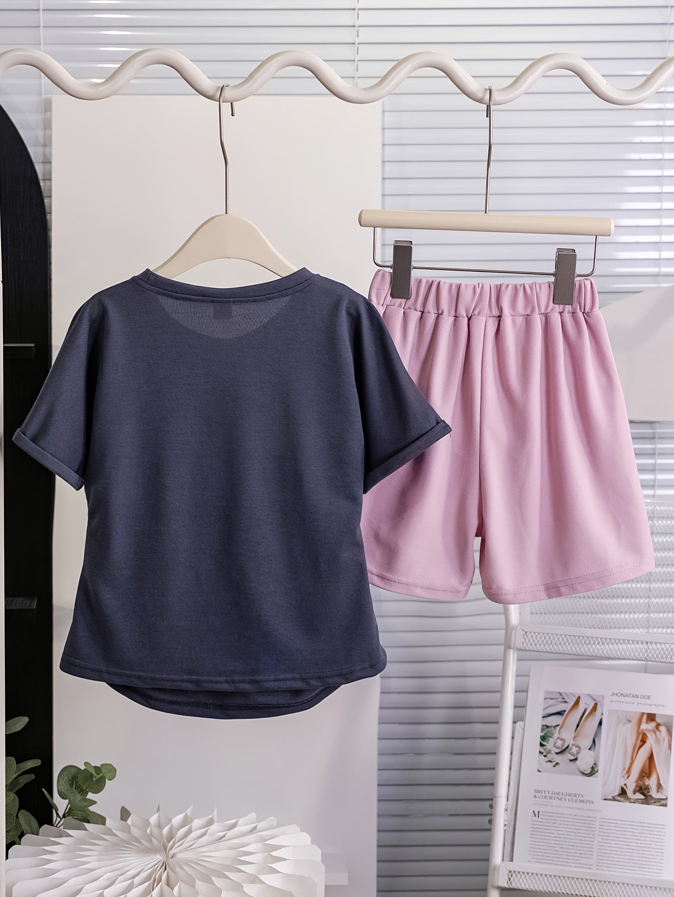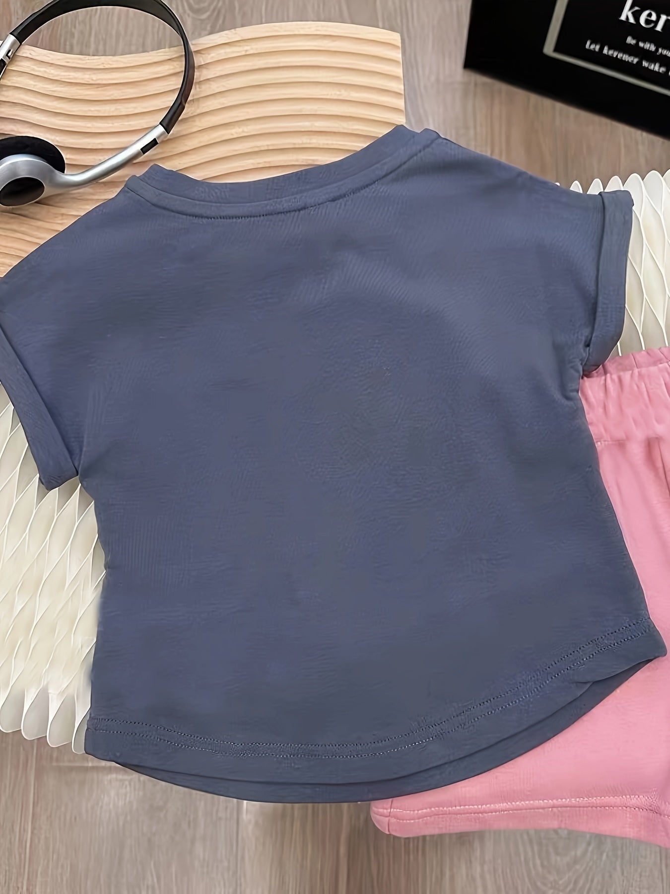 2 dona sport uslubidagi qizlar uchun paxta futbolka va shortikdan iborat ikki qismli to'plam, ochiq havoda tasodifiy kiyim uchun mukammal.