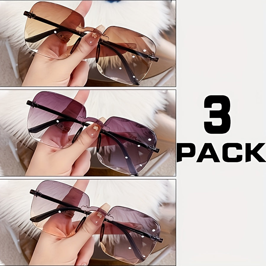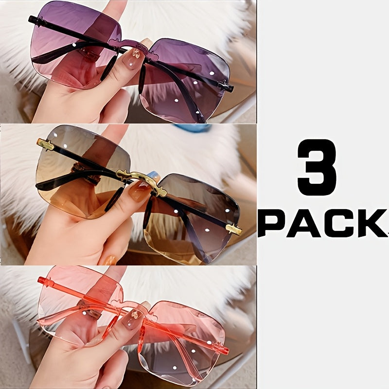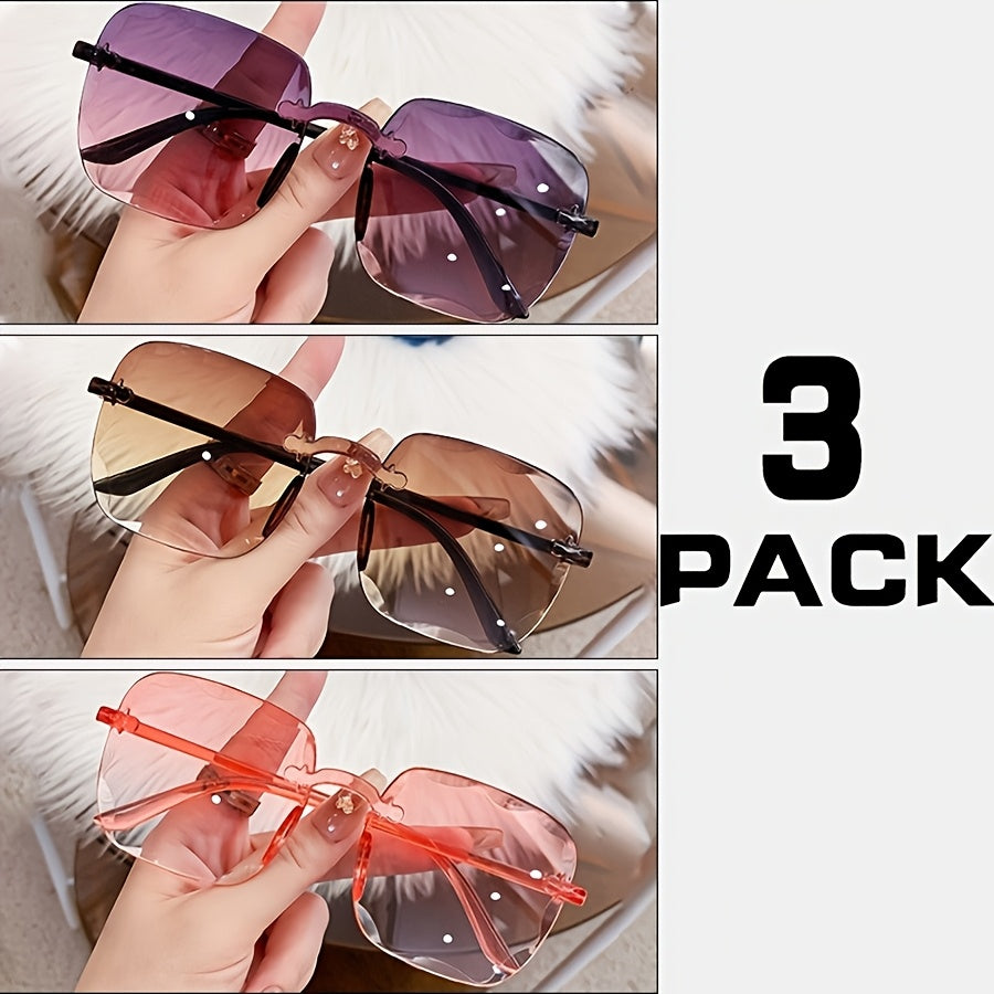 3 juft kvadrat ramkasiz shisha ko‘zoynaklar erkaklar va ayollar uchun to‘y, ko‘cha uslubi, yoshlar uchun ko‘zoynaklar