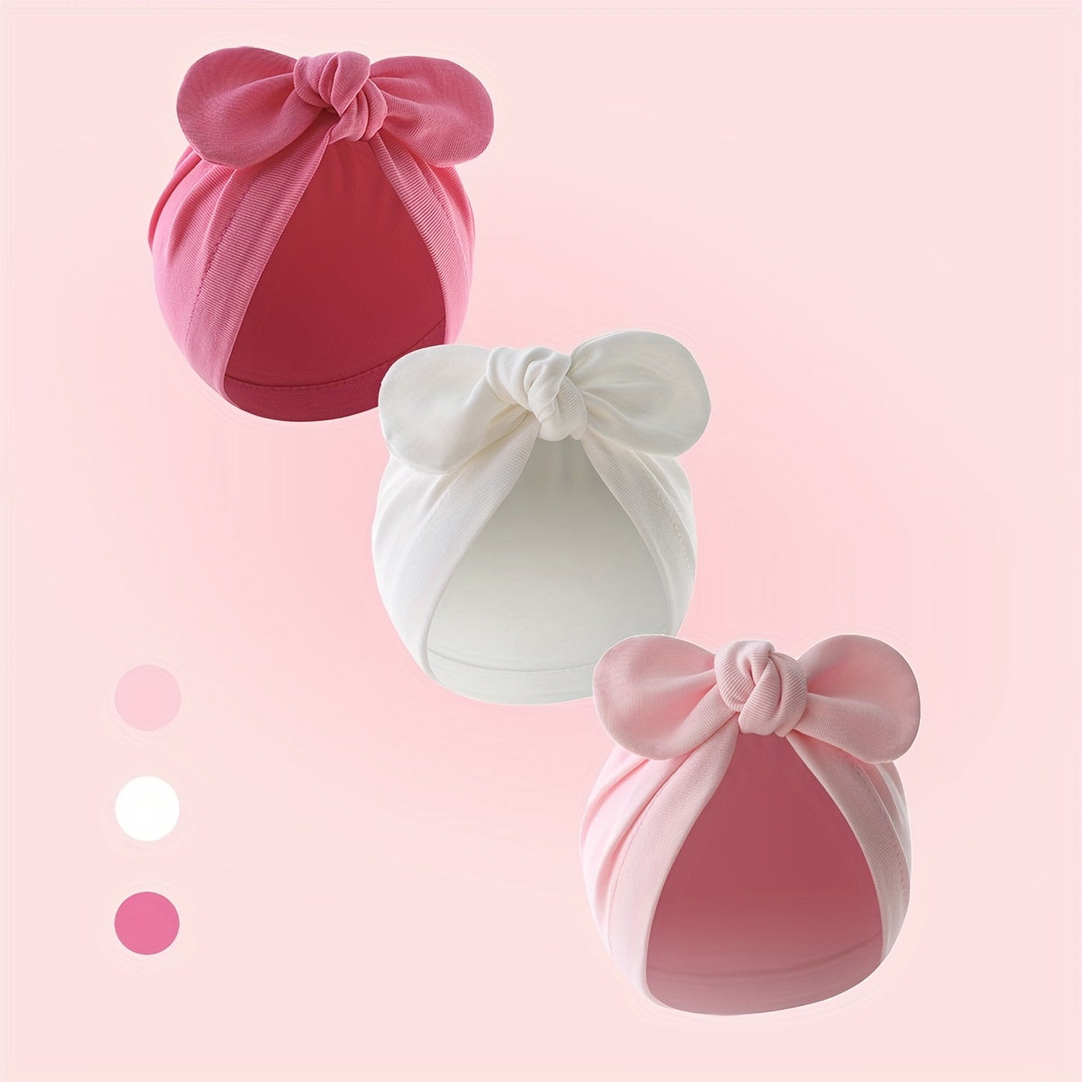 3 dona chaqaloq va yangi tug'ilgan bolalar uchun shapkalar, yumshoq bog'ichli bosh qopqog'i