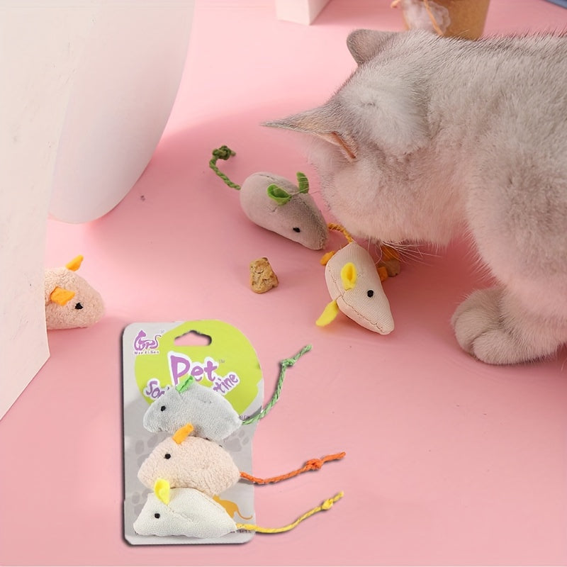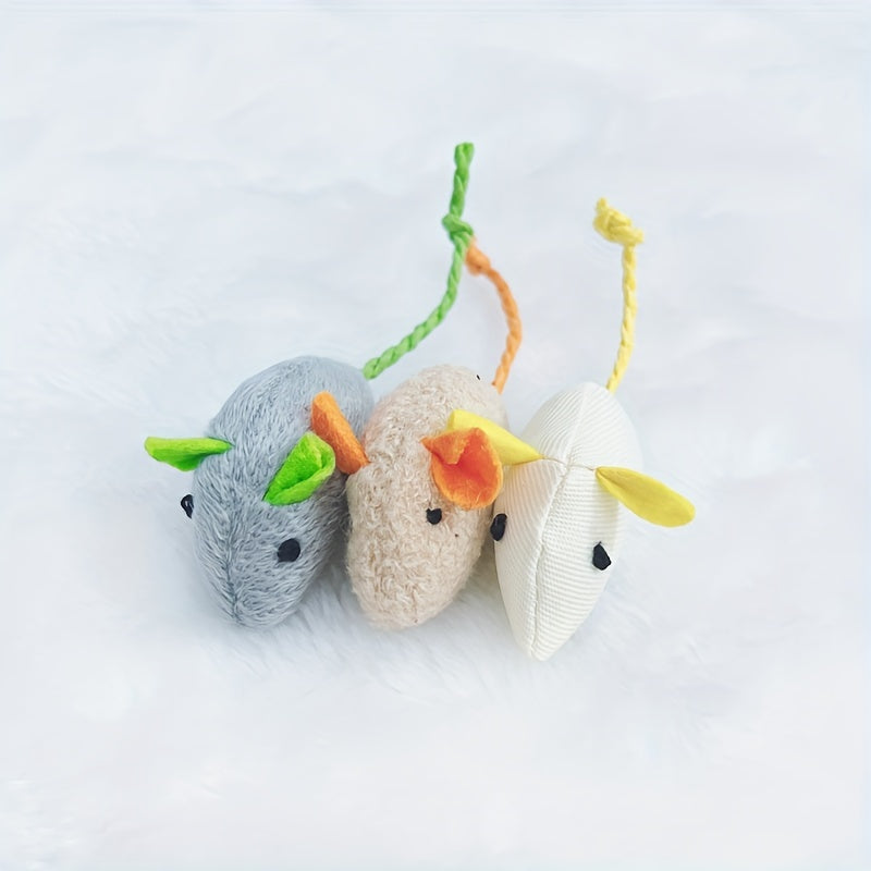 3 mo'ynali sichqoncha mushuk o'yinchoqlari, haqiqiy quloqlari bilan, yumshoq mato, interaktiv o'yin, batareyasiz