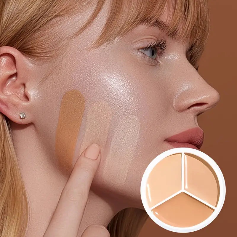3-Shade Concealer Palette Toʻliq Yopish Qobiliyatiga Ega Qorongʻi Doʻmboqlar va Yoriqlar uchun