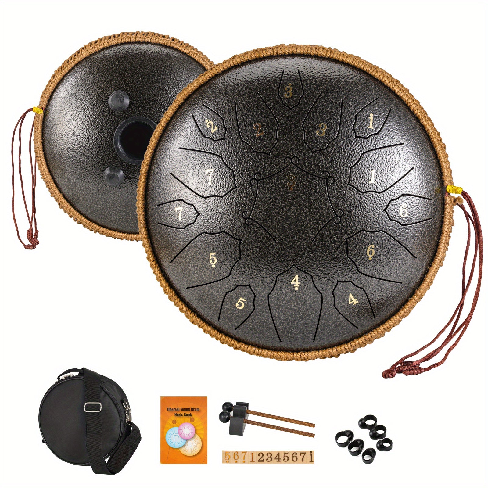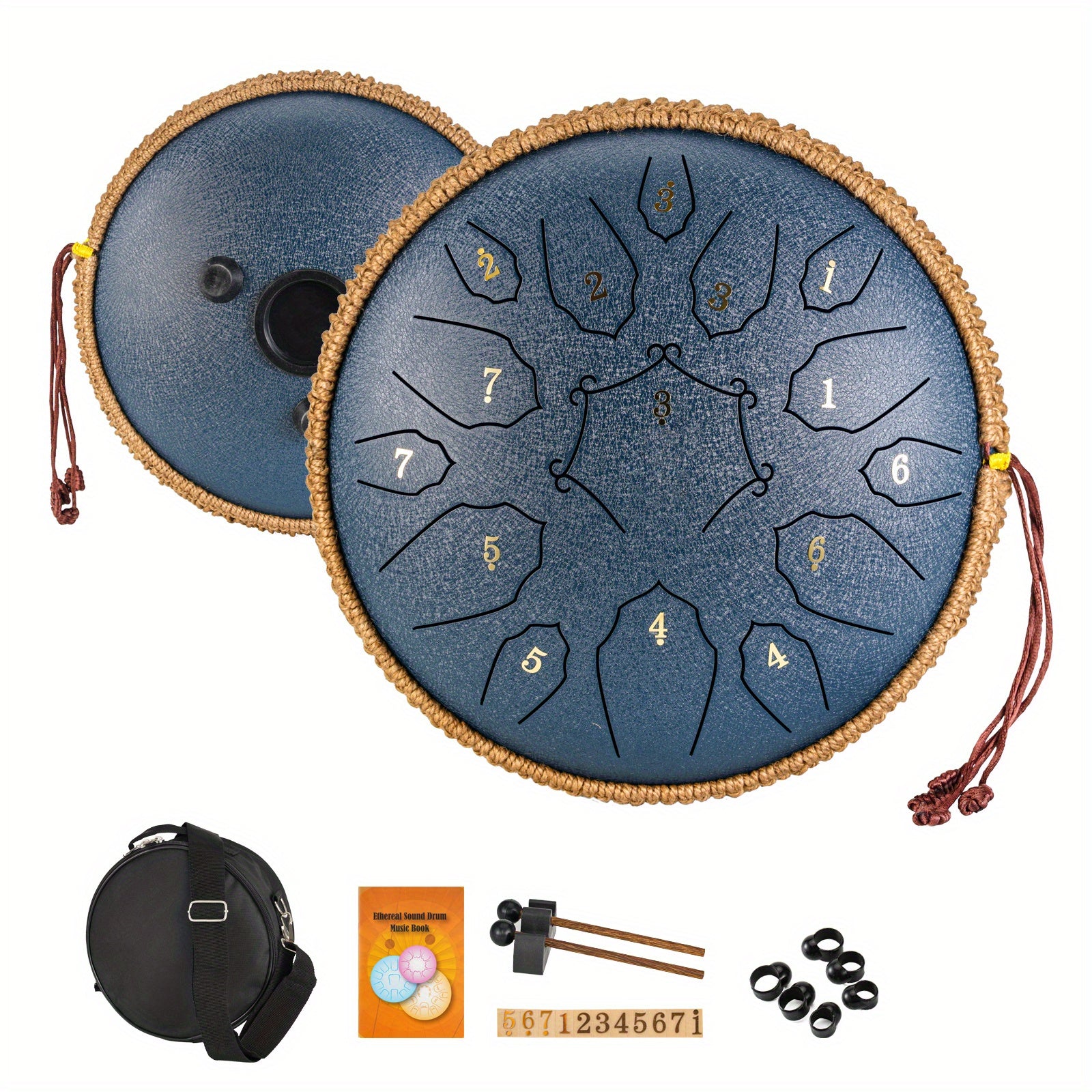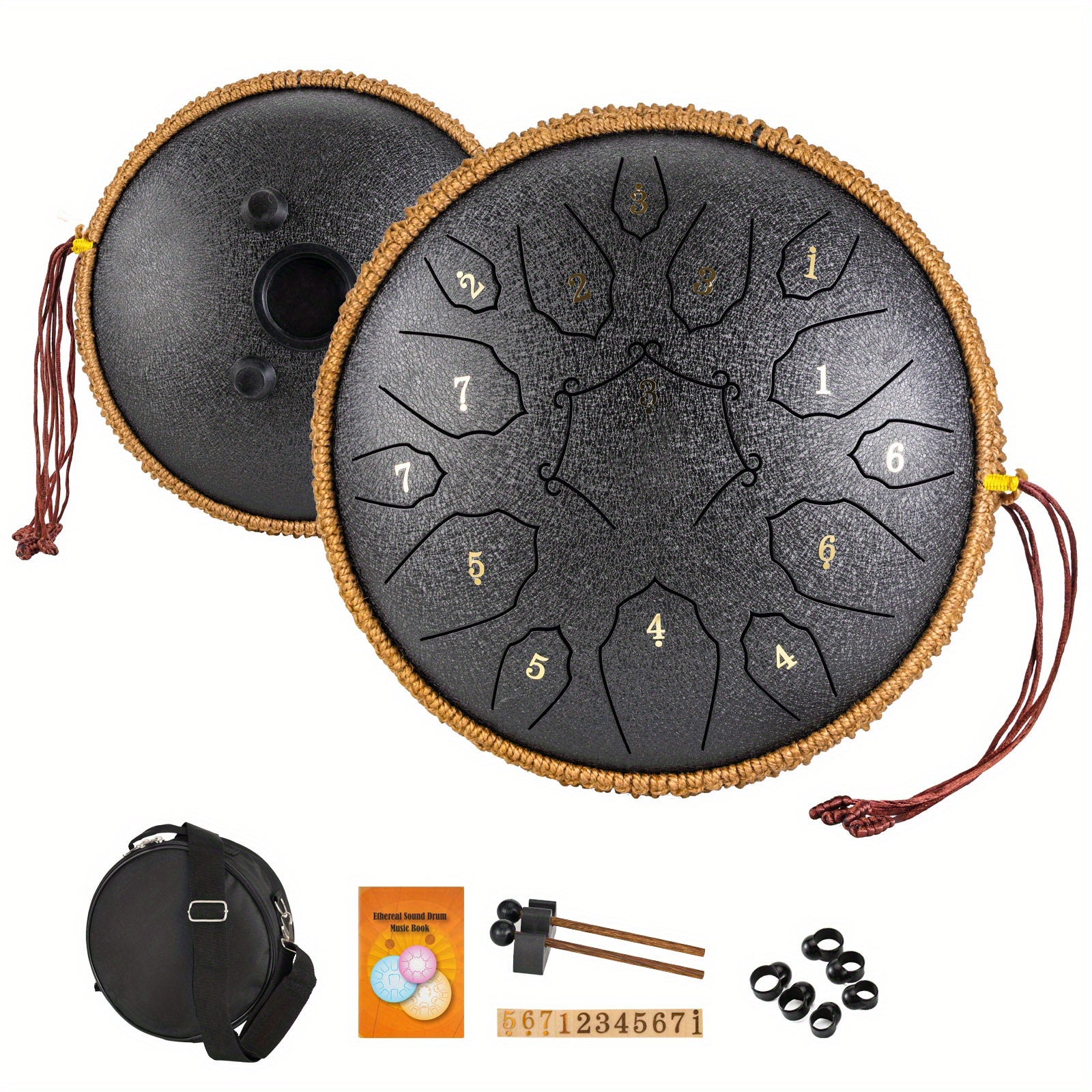 30.48cm po'lat tiltongli davul, 15 ta notali, sayohat sumkasi va aksessuarlar bilan, meditatsiya, yoga va dam olish uchun