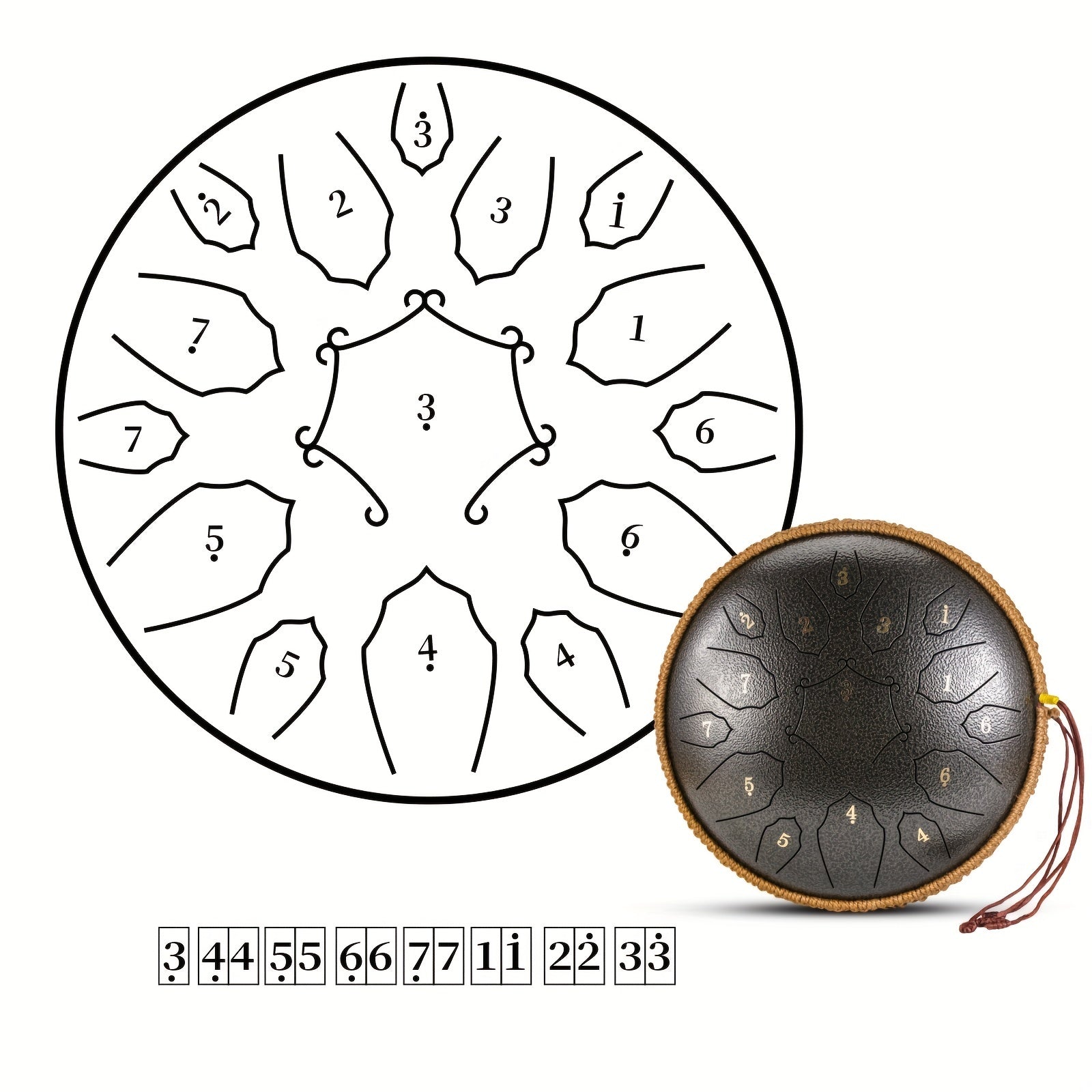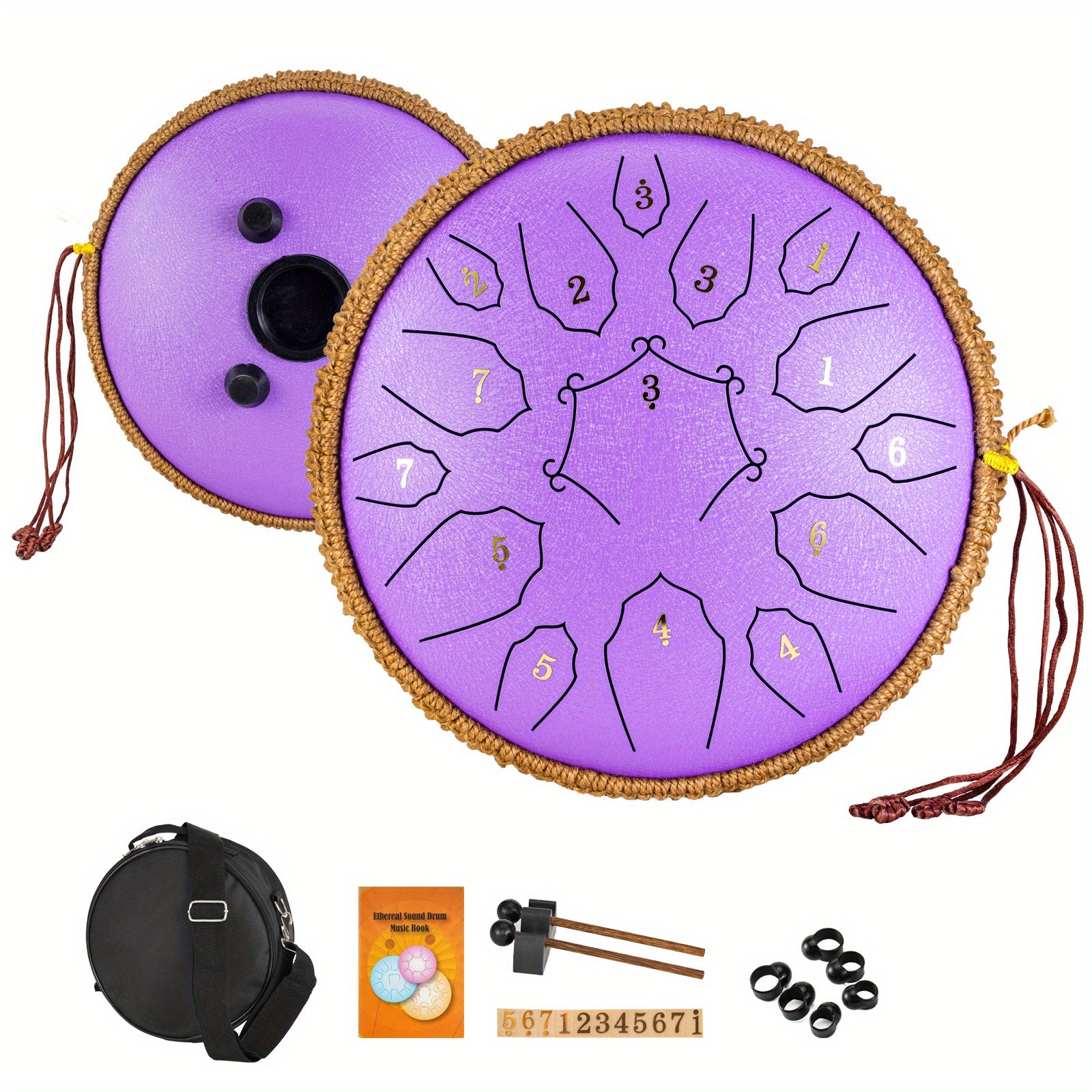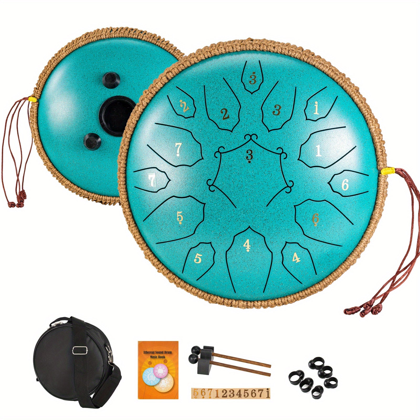 30.48cm po'lat tiltongli davul, 15 ta notali, sayohat sumkasi va aksessuarlar bilan, meditatsiya, yoga va dam olish uchun