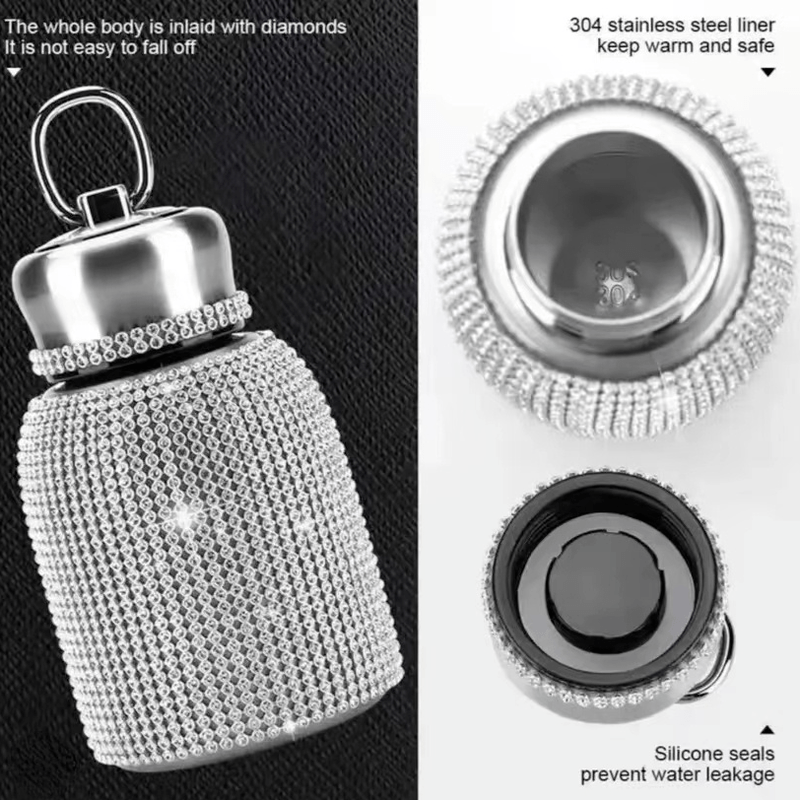 Ayollar uchun 300ml zanglamaydigan po'latdan yasalgan suv shishasi, olmoslar bilan sovg'a