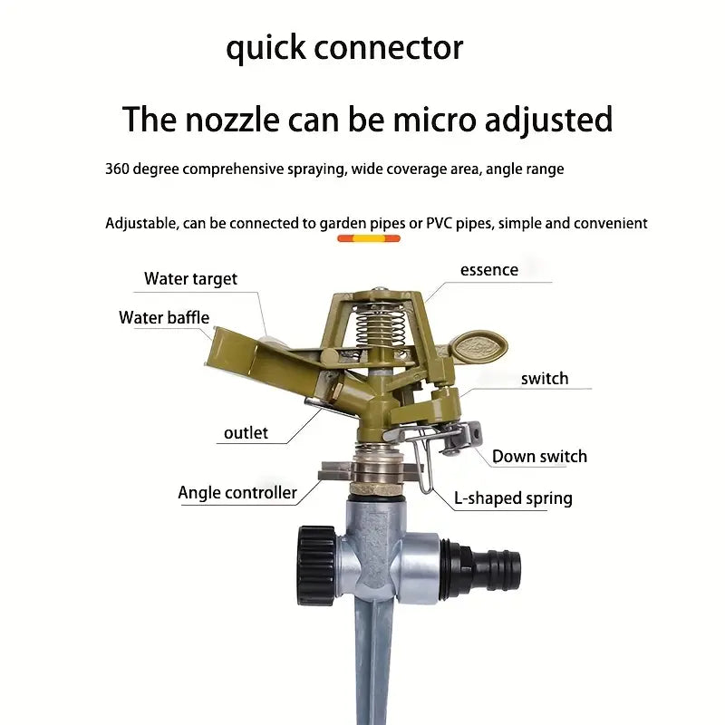 360° avtomatik aylanuvchi bog' bog'bonchasi, sug'orish uchun seriyali ulanish mumkin bo'lgan tomchilatgich bilan