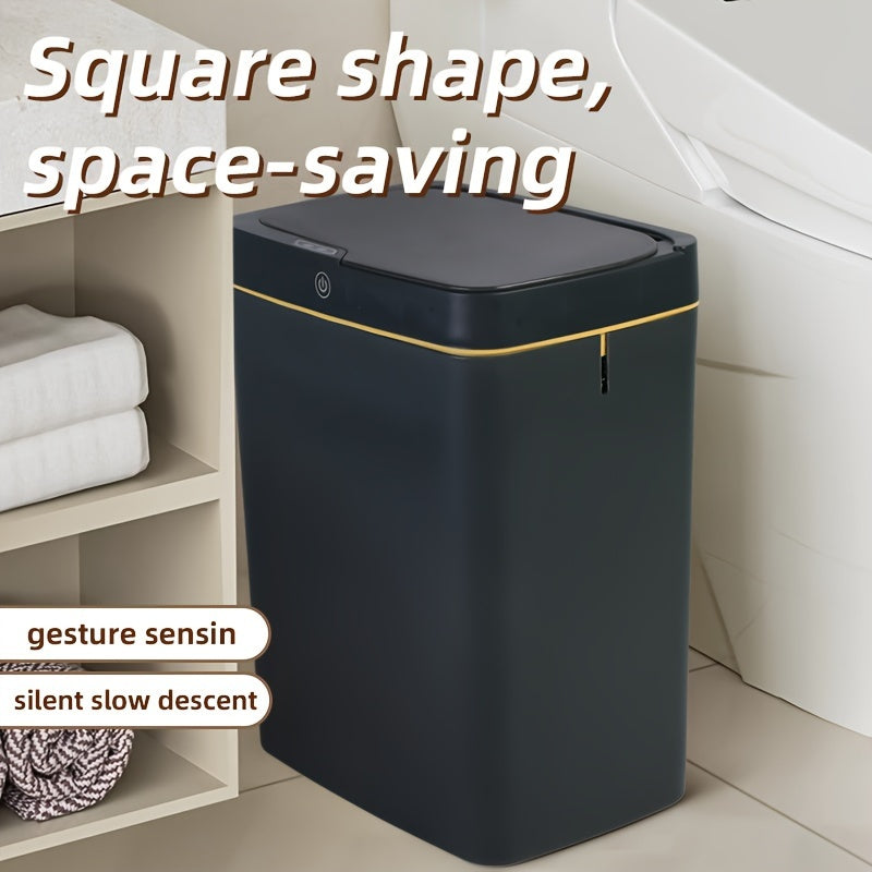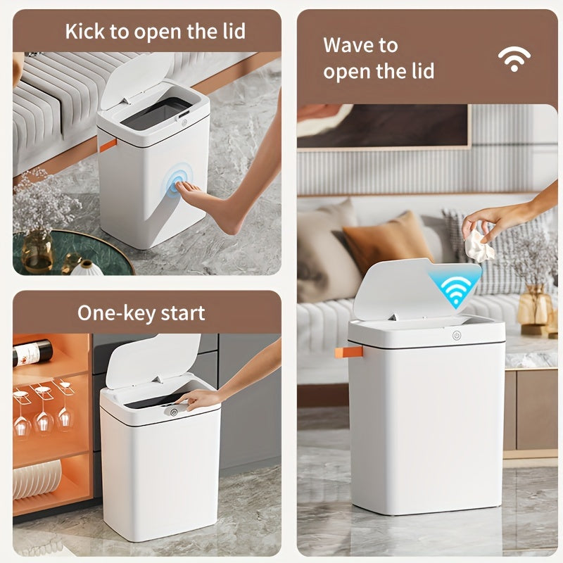 4.75 gallon aqlli axlat qutisi infraqizil sensorli oyoq bosish bilan ochiladi USB bilan quvvatlanadigan oq qora oltin detallari bilan hammom ofis oshxona