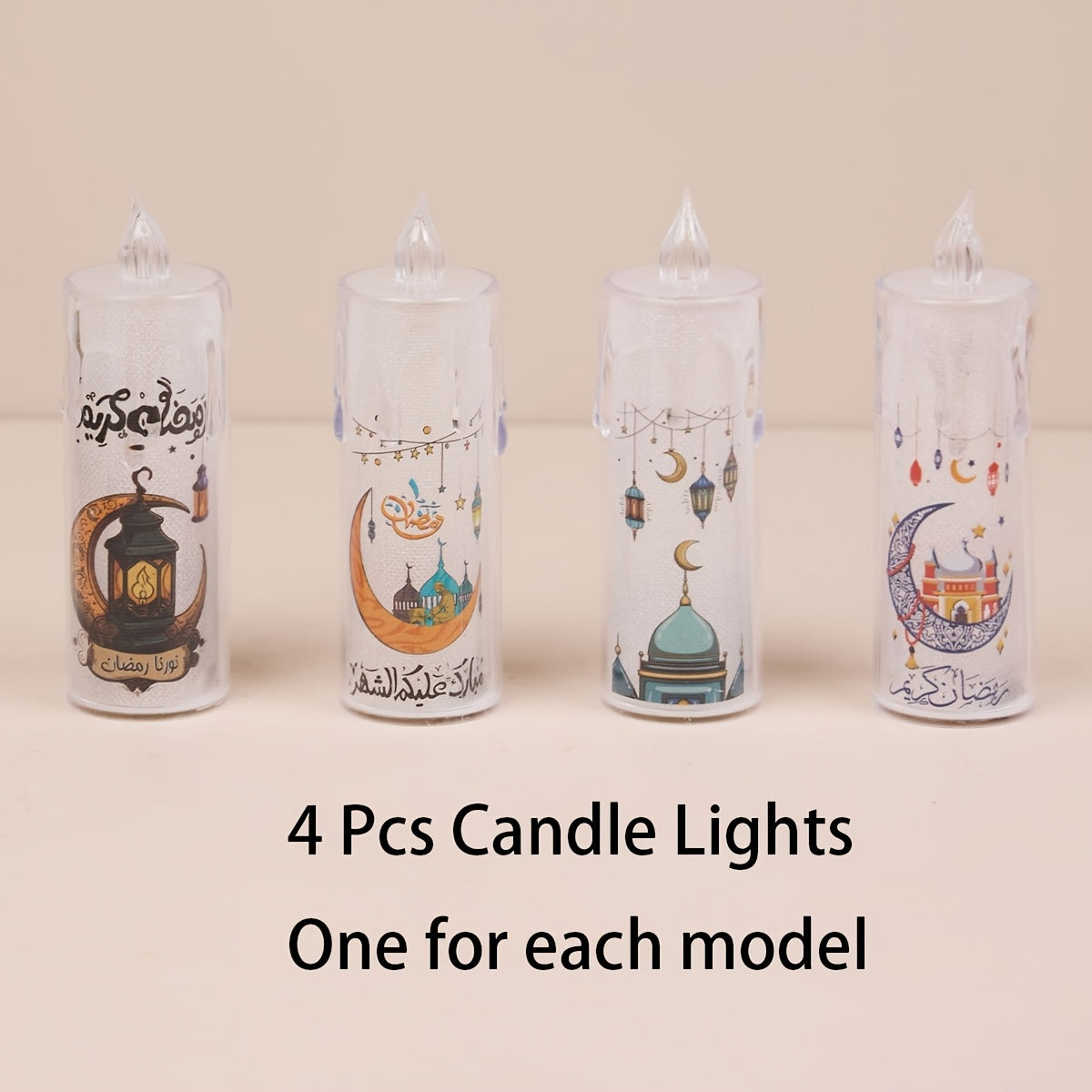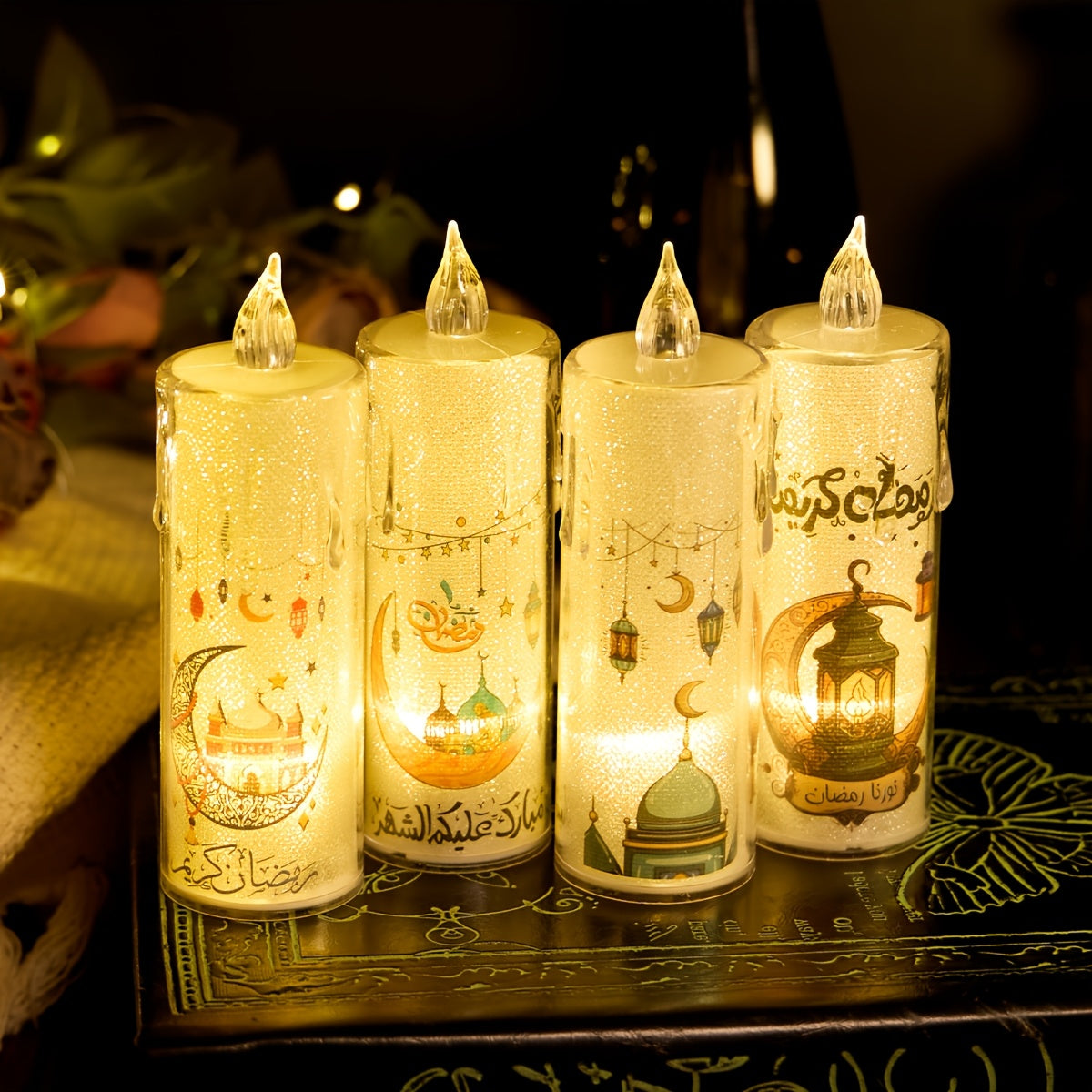4 ta LED Ramazon sham yoritgichlari batareyalar bilan ishlaydi, Eid va bayram tadbirlari uchun mukammal.