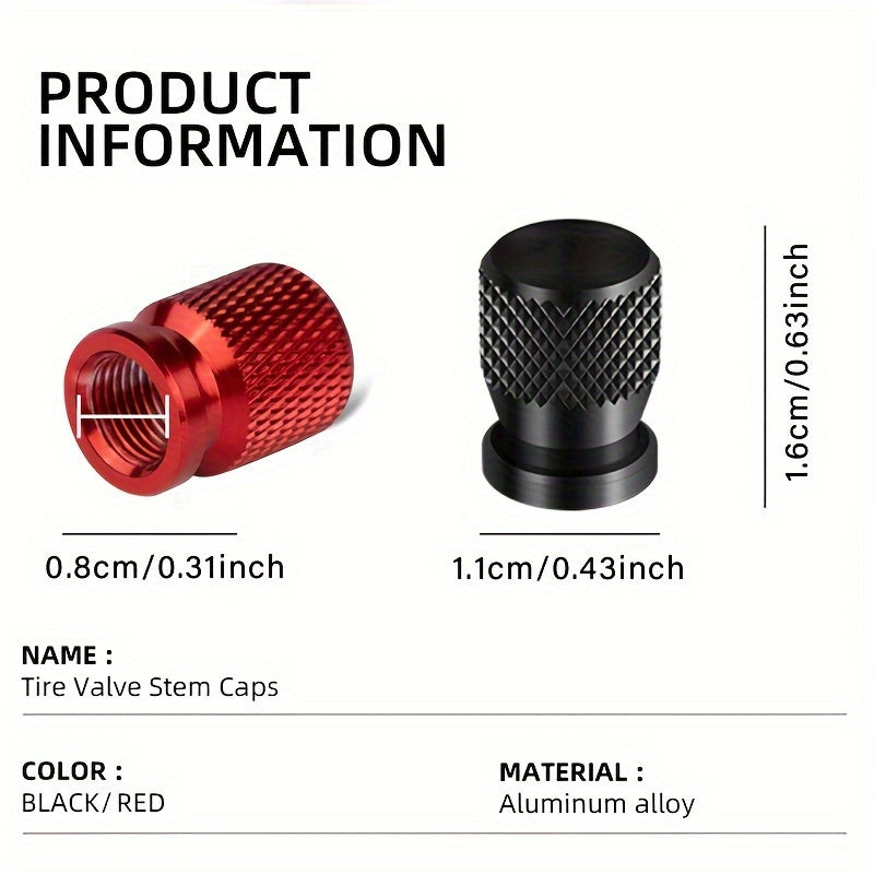 4 dona alyuminiy alloy valf qopqog'i teksturali qora va qizil avtomobil g'ildirak aksessuarlari