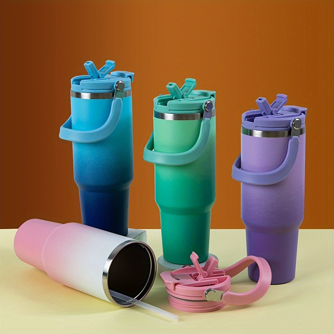 40oz Izolyatsiyalangan zanglamaydigan po'latdan yasalgan tumbler, tutqichli qopqoq va burilishli quvurlar bilan
