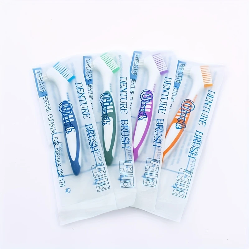 4 dona protez tozalash cho'tkasi qattiq ikki tomonlama tish cho'tkasi protezlar uchun