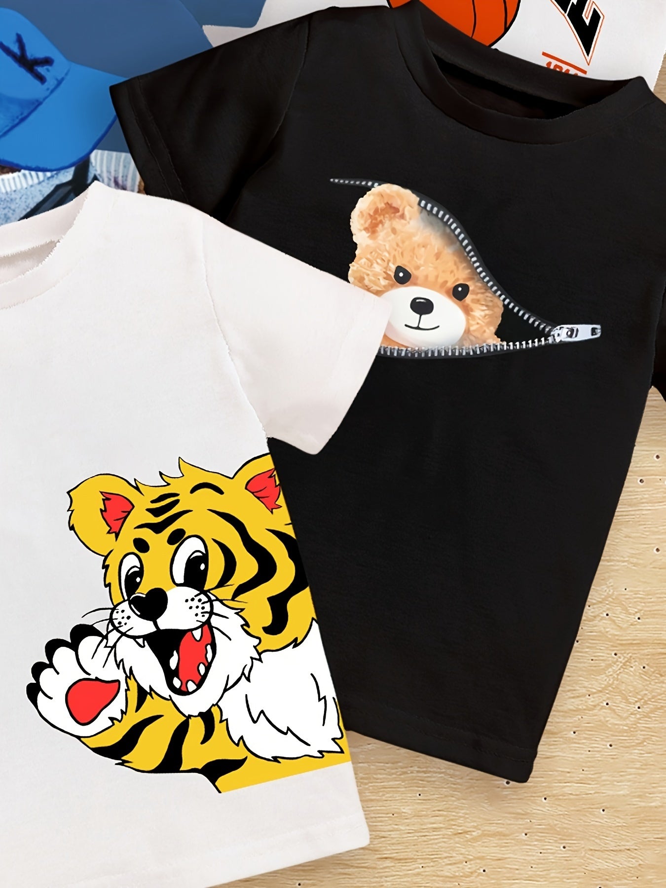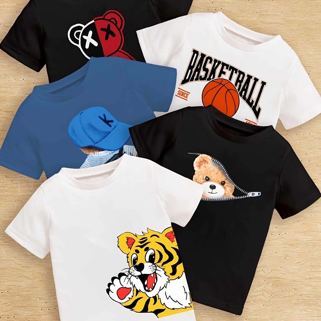 Yigitlar uchun yozgi grafik futbolkalar to'plami 5 ta multfilm, Valentin, basketbol, paxta aralashmasi