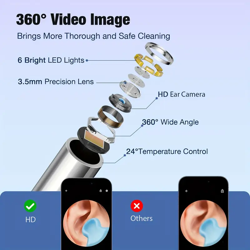 iOS va Android qurilmalari uchun 5 boshli USB zaryadlanadigan quloq mumini olib tashlash to'plami, saqlash qutisi va tozalash to'plami bilan