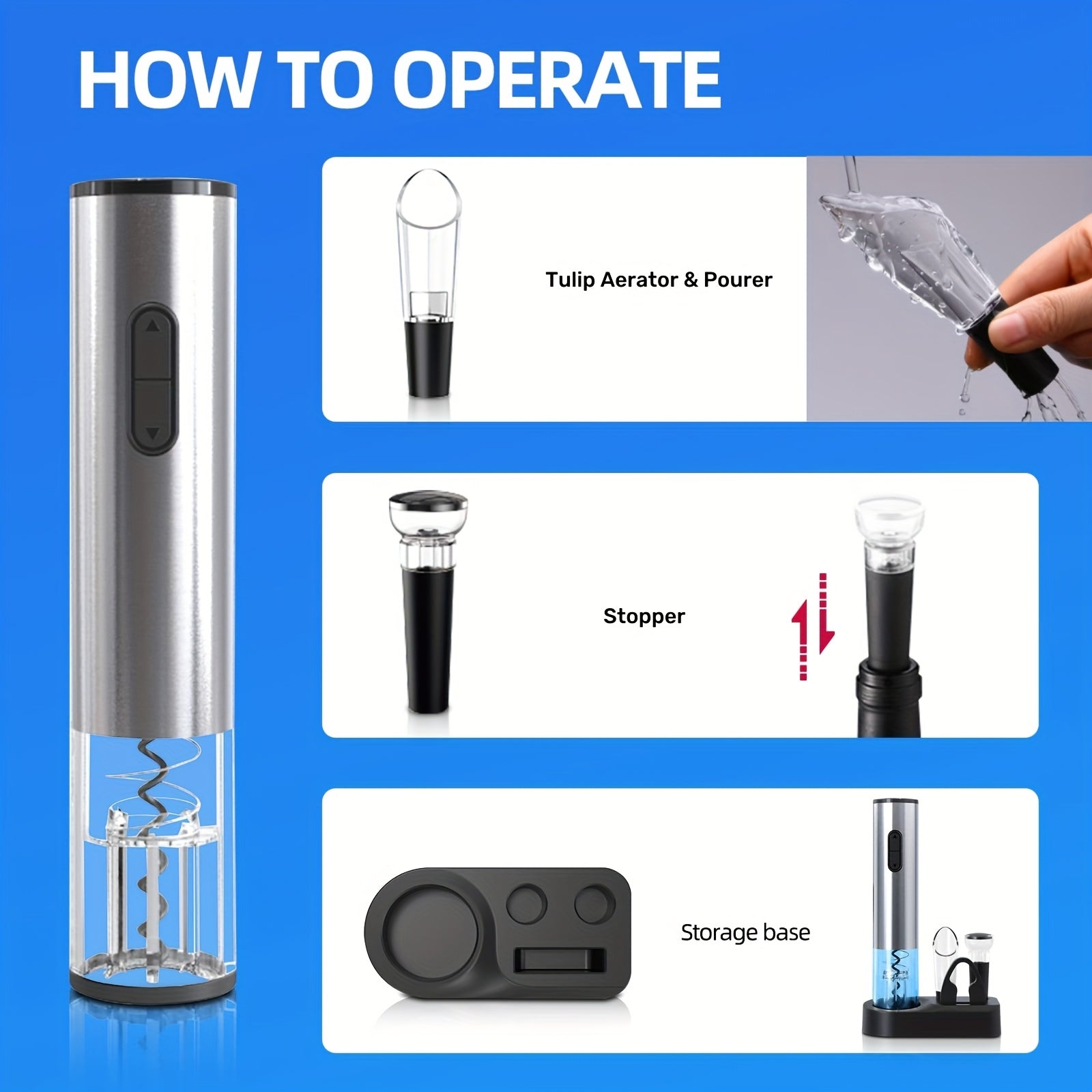 5-in-1 Elektrik vino ochgich to'plami, qizil vino quyish va saqlash bazasi bilan