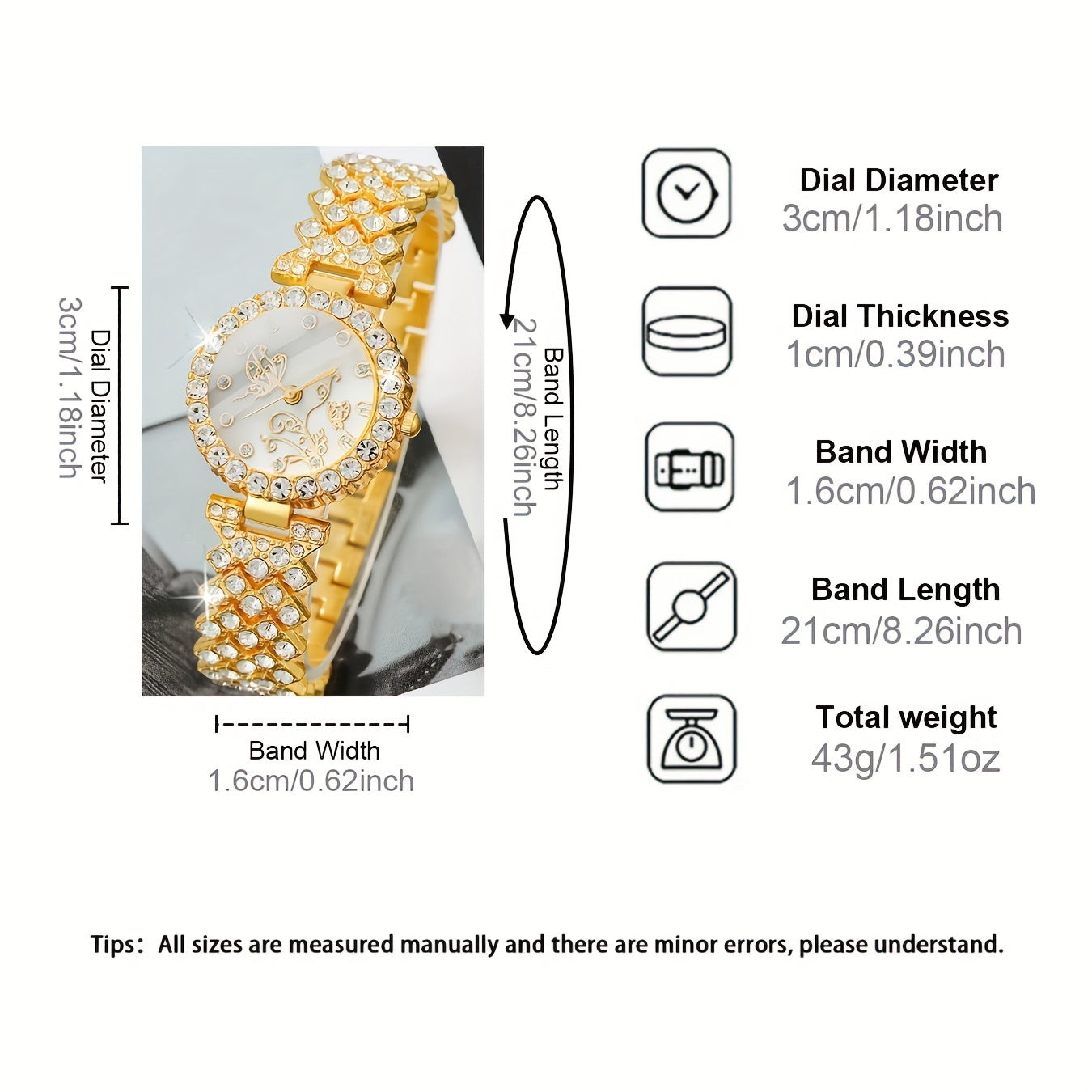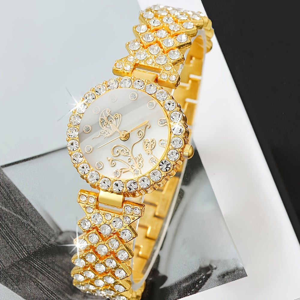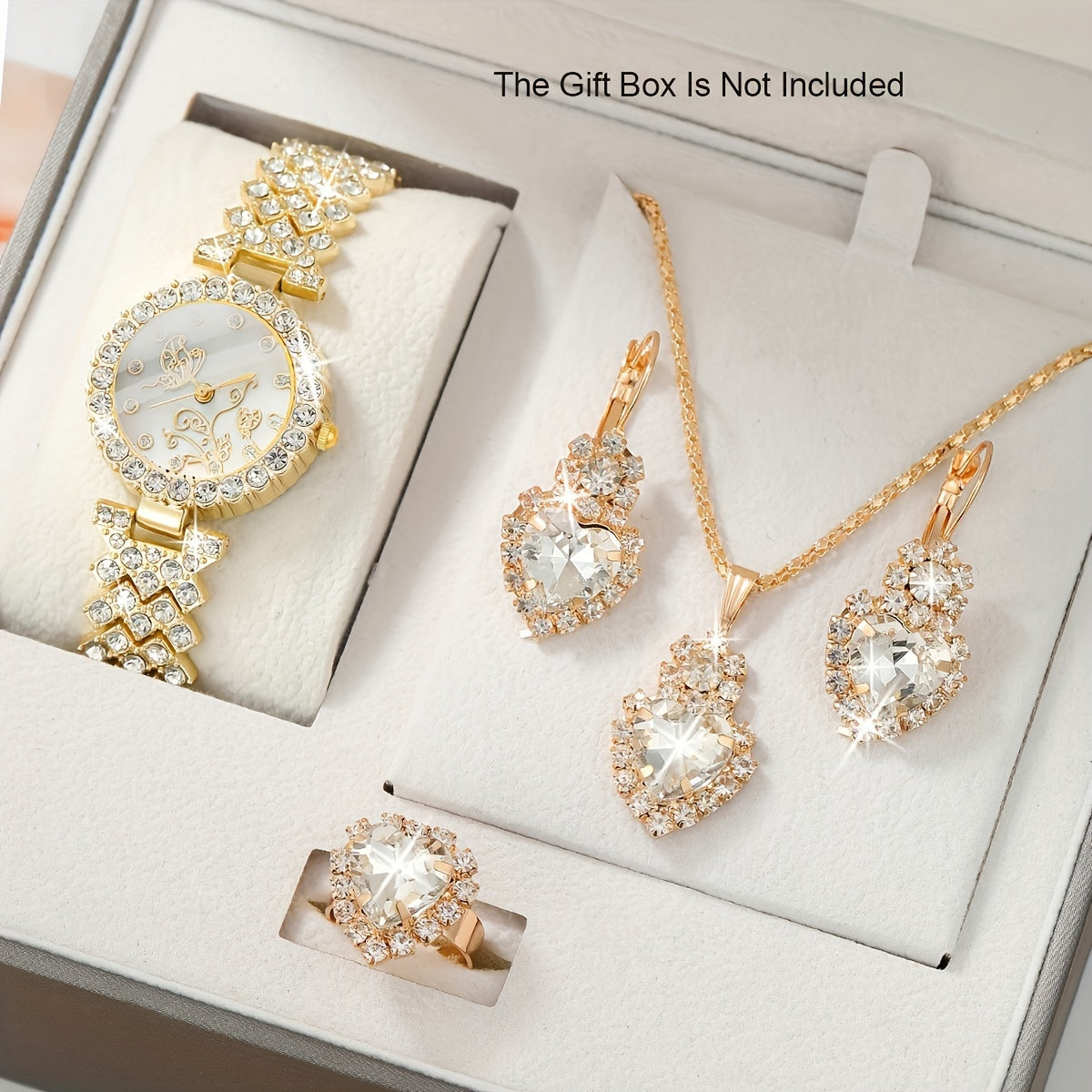 5-qismli ayollar uchun soat va zargarlik to'plami, kvarts harakati, analog dumaloq ko'rsatkich, kristall aksentli qotishma tasma, ona uchun sovg'a to'plami