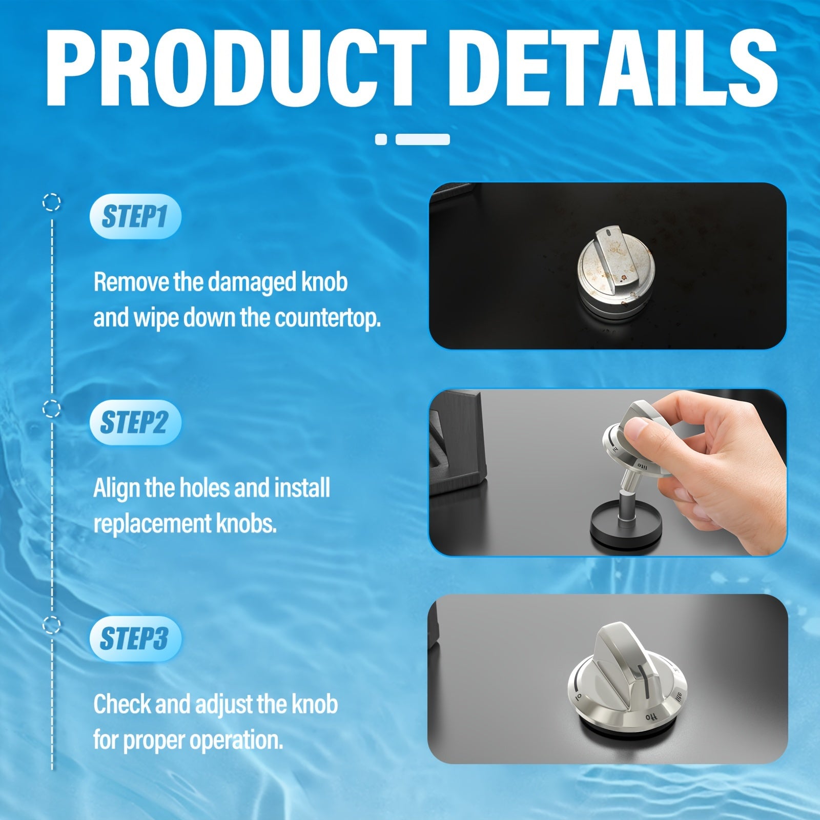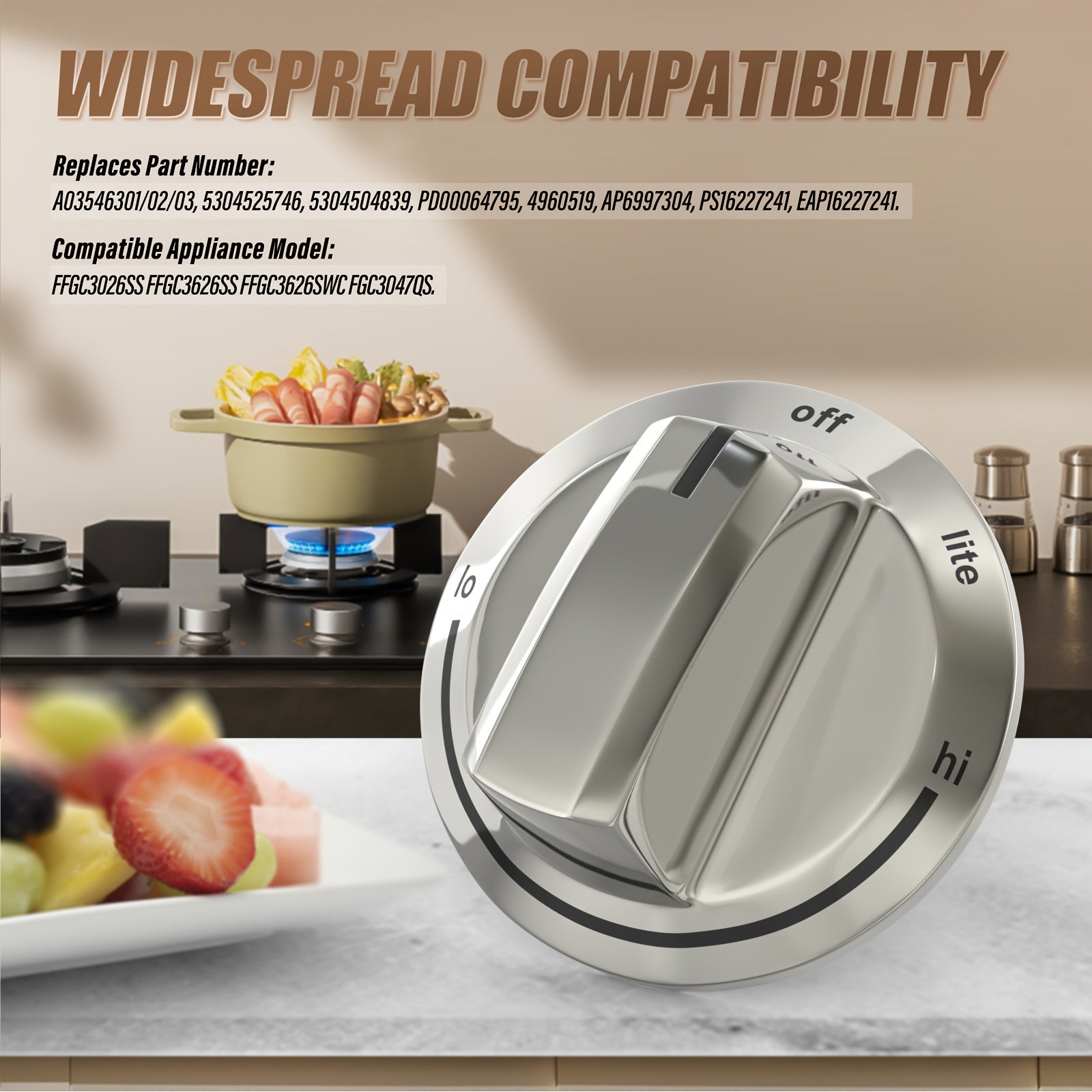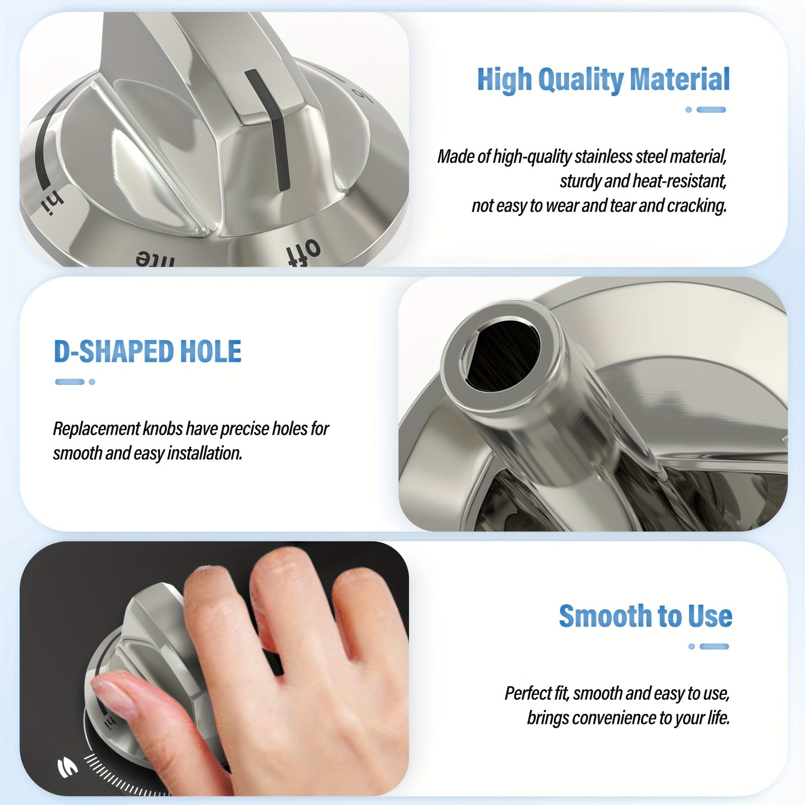 Zanglamaydigan po'latdan yasalgan pech tugmalari, gaz pechlariga mos keladi, 5 ta to'plam