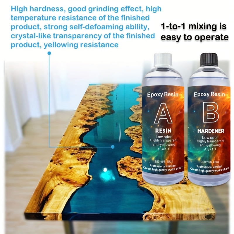 500ml Ochiq Epoksi Resin to'plami san'at hunarmandchiligi, zargarlik, yog'ochni quyish, suv o'tkazmaydigan, sariqlashmaydigan