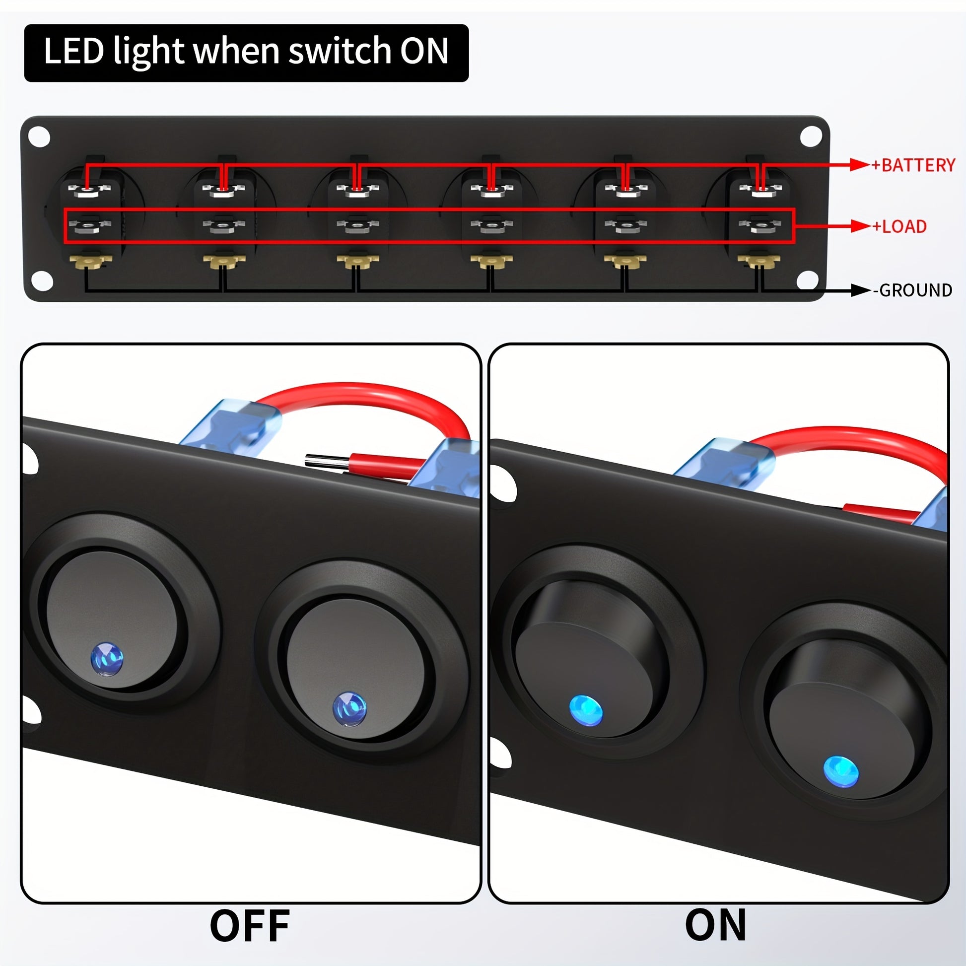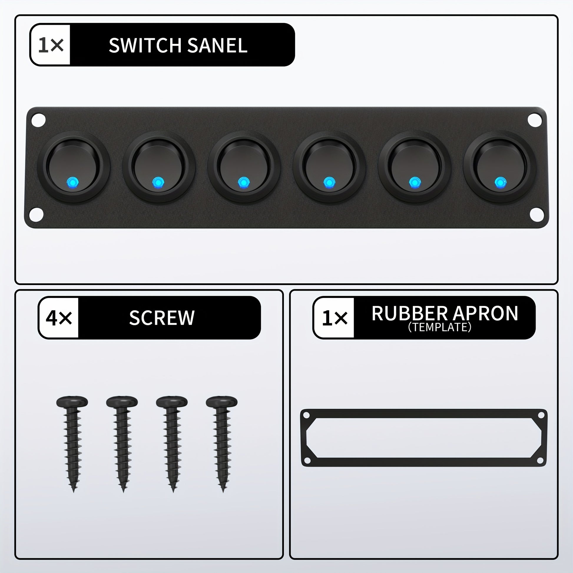 6-Gang Avtomobil Rokker Toggle Switch Paneli Ko'k 20A SPST Dengiz Matorli Qayiqli Yuk Mashina