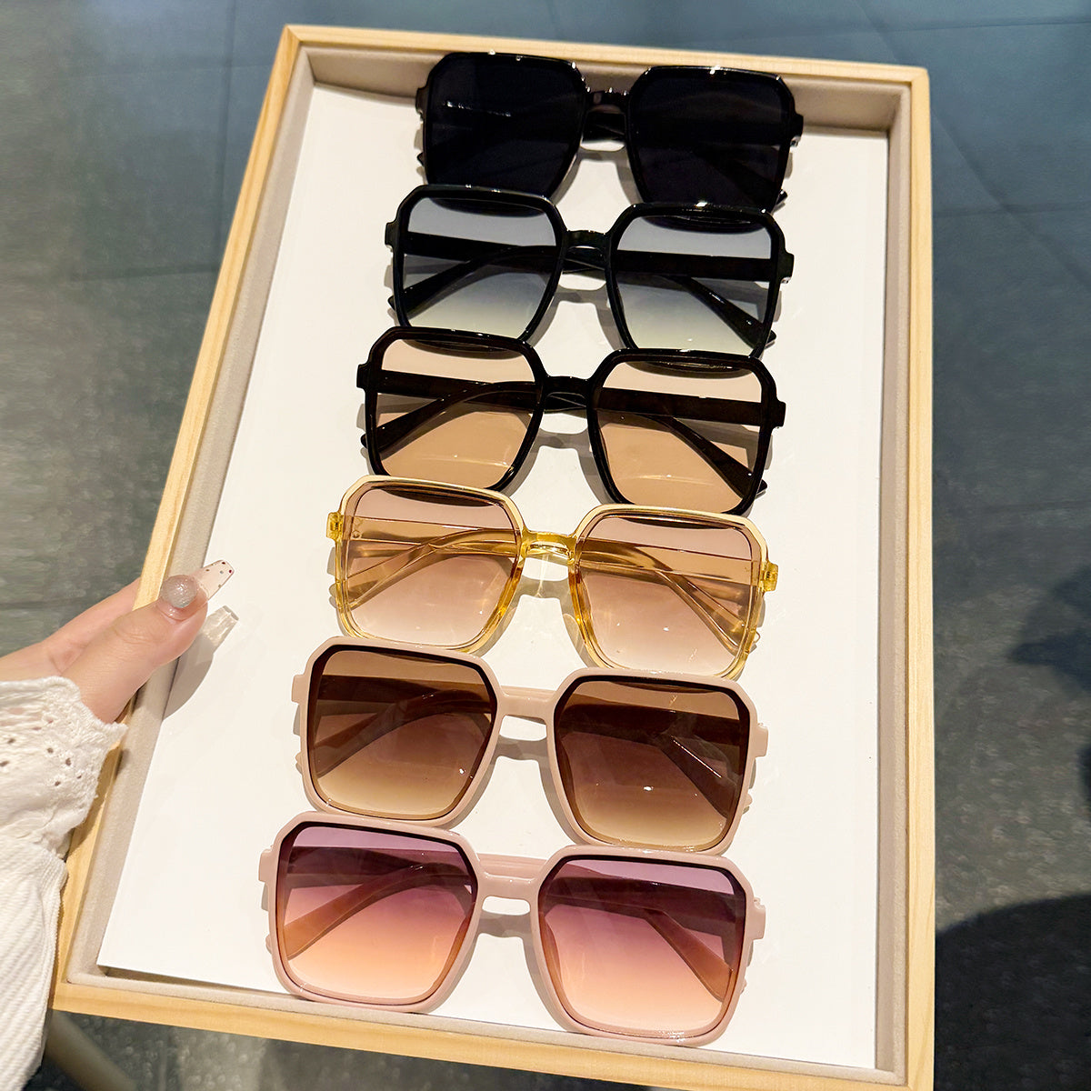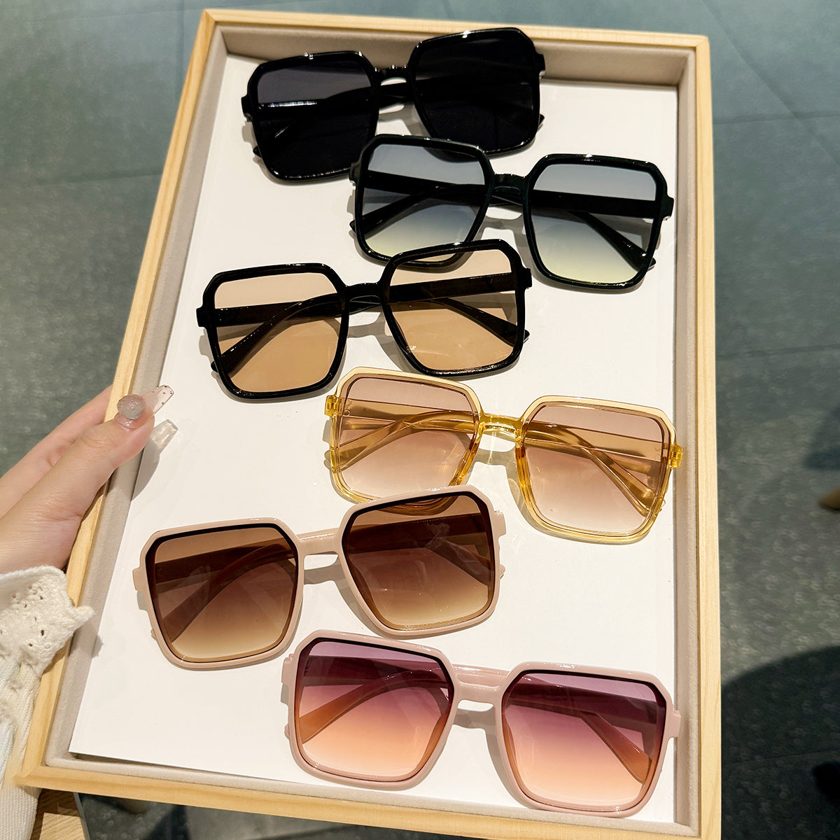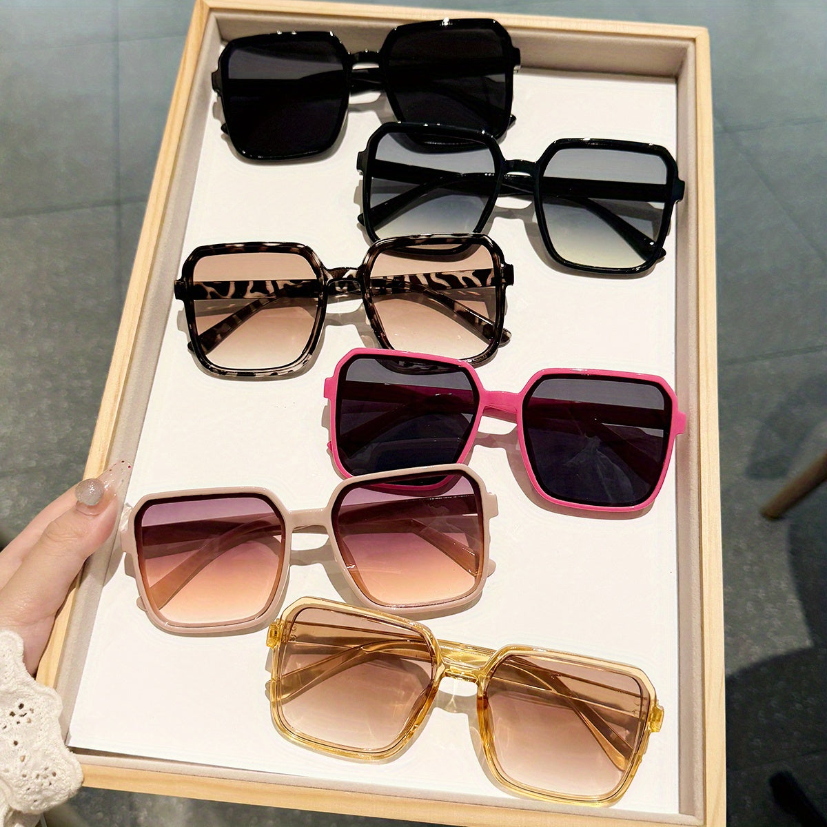 6-ta qismli katta moda ko‘zoynaklar to‘plami, anti-refleksli PC linzalar bilan, sayohat va festival uchun