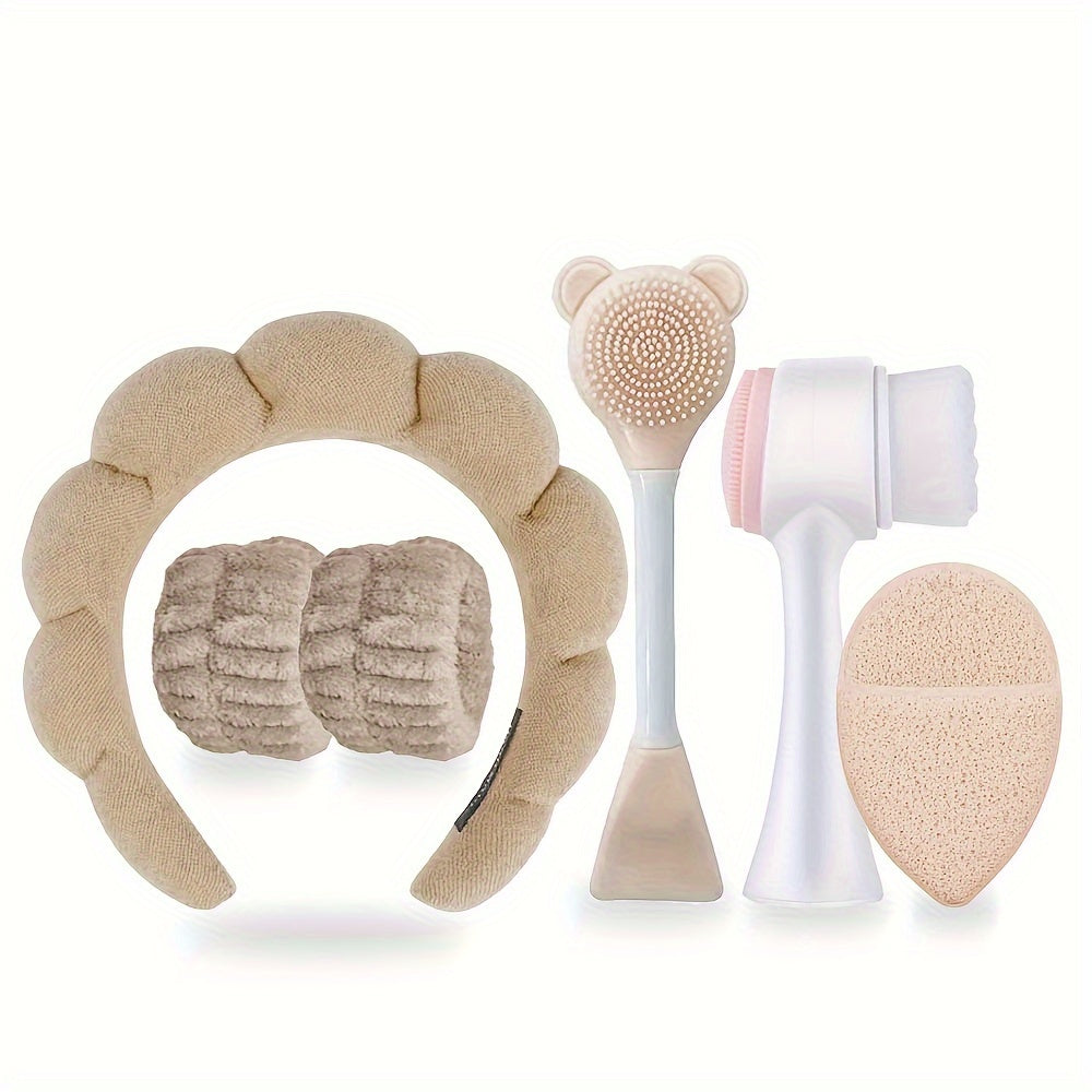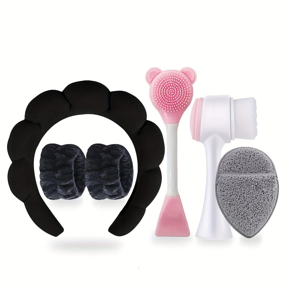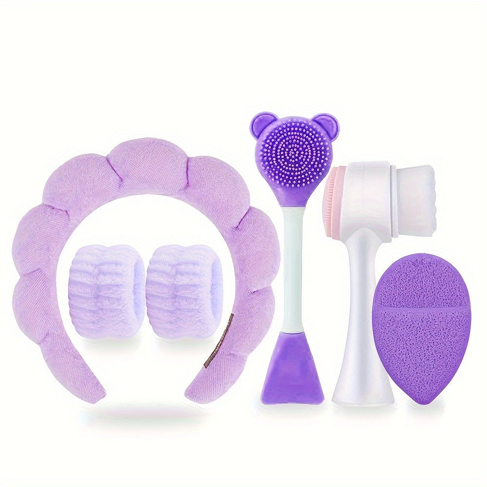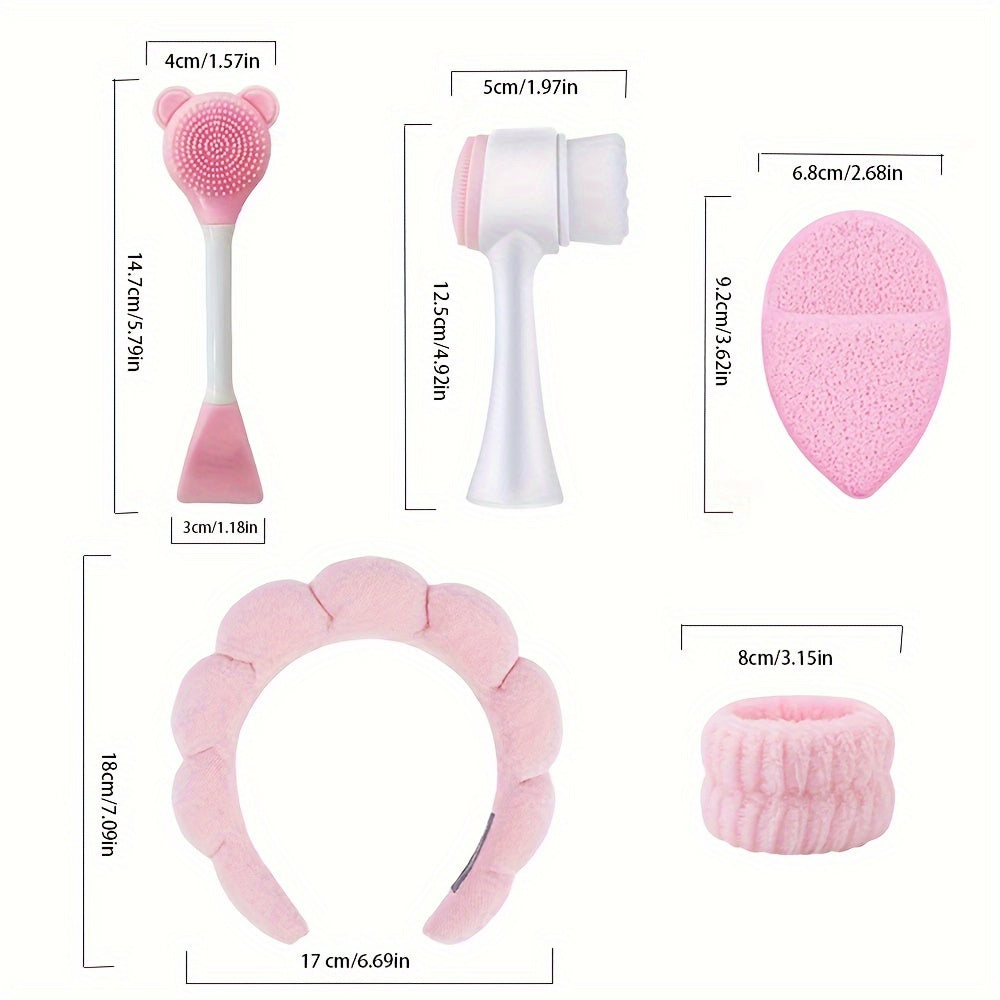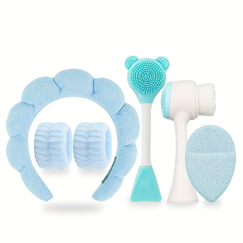 6-to'plamli gippoallergik silikon yuz parvarishi to'plami, maskara cho'tkasi va boshband bilan