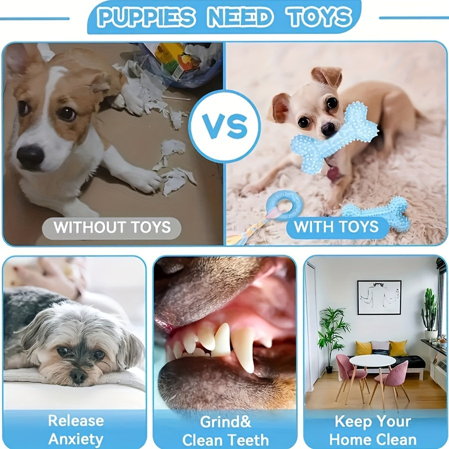 6 dona kichik it uchun rezina chaynash o'yinchoqlari, tish chiqarish va tishlarni tozalash to'plami