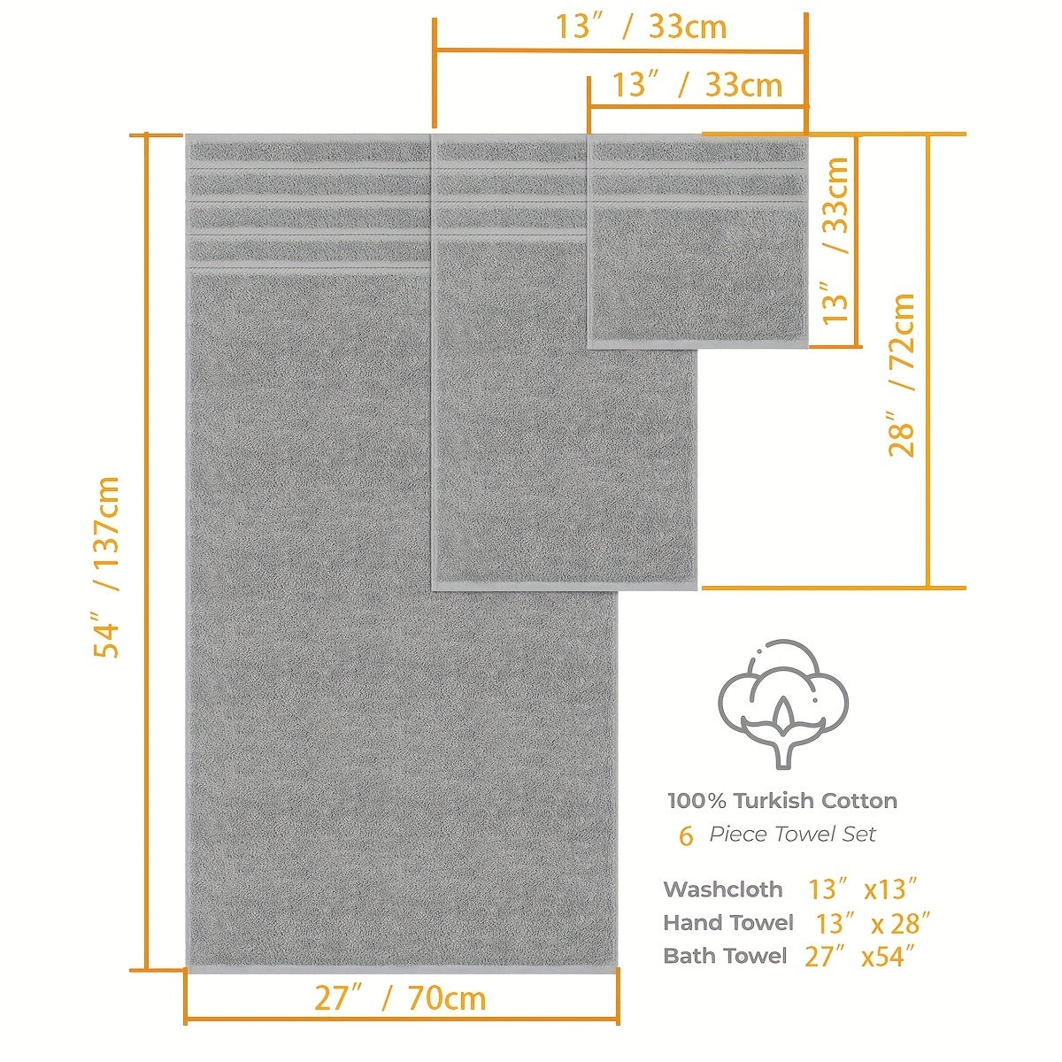 6-to'plam paxta sochiq to'plami, vannaxonali qo'l sochiqlari, bir rangli, hammom, uy, sayohat uchun