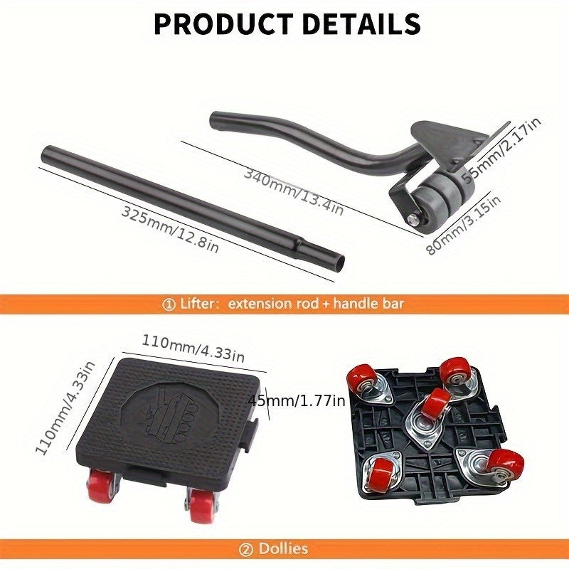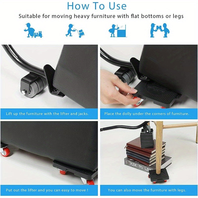 6 dona og'ir yuk ko'taruvchi mebel ko'taruvchi, 5 ta slayder, crowbar, 360° aylanish g'ildiraklari, 453.59 KG yuk ko'tarish qobiliyati, divanlar, shkaflar va muzlatgichlarni ko'chirish uchun ideal.