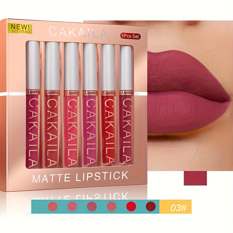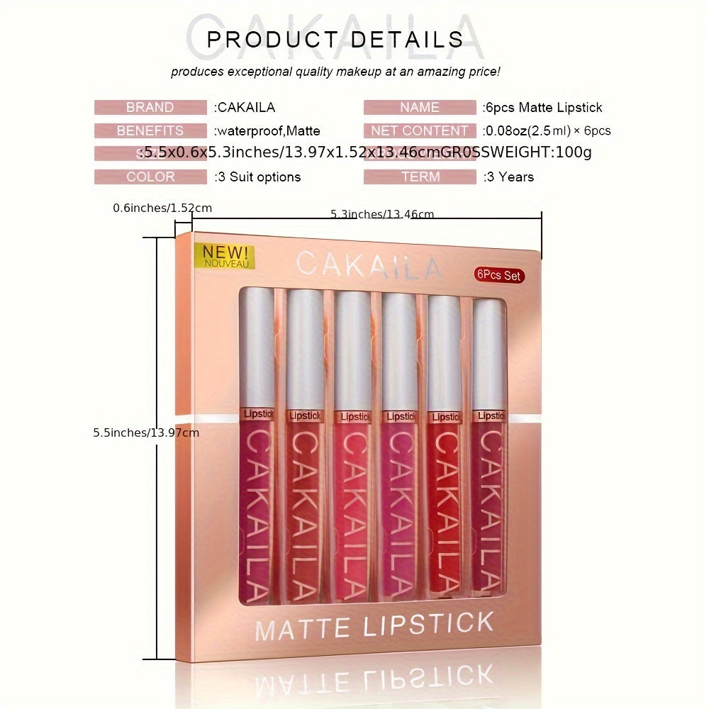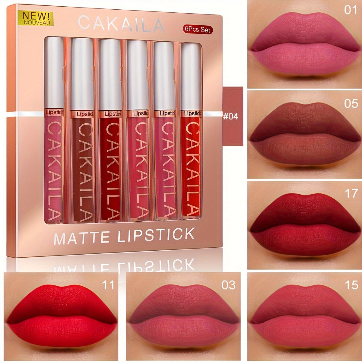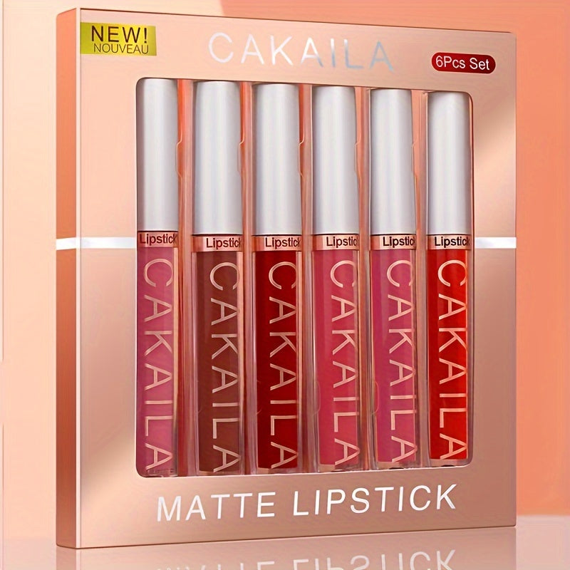 6 dona Velur Mat qizil lab bo'yog'i to'plami, uzoq davom etadigan, suv o'tkazmaydigan, so'nmaydigan