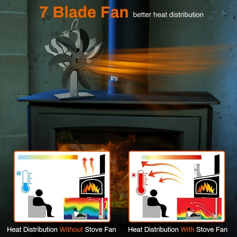 7 pichoqli pech pechasi ventilyatori, issiqlik bilan ishlaydigan, zangga chidamli metall, jim, oson o'rnatiladi
